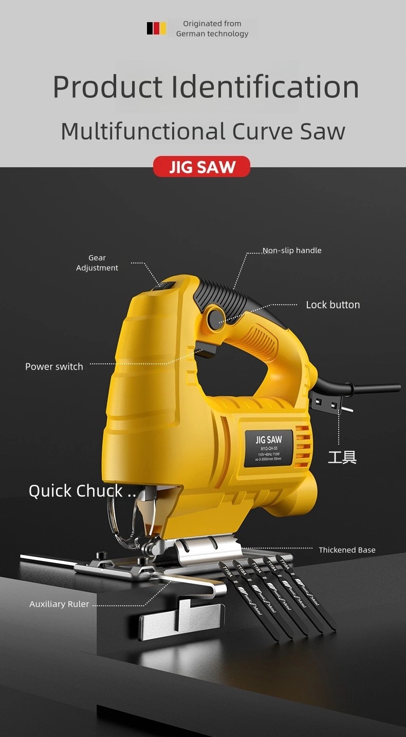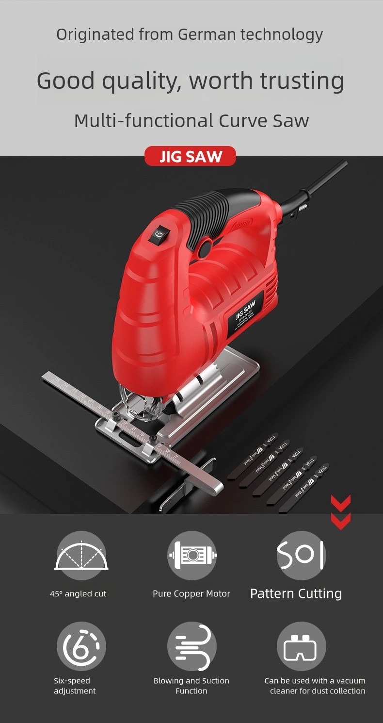 Whether you are installing shelves, building cabinets, or repairing furniture, this electric jig saw is a practical tool for home improvement and DIY work.