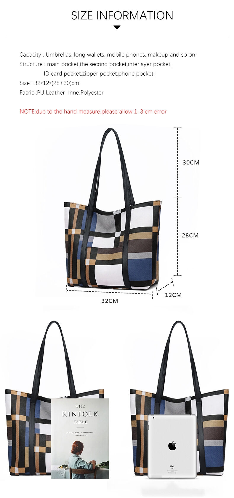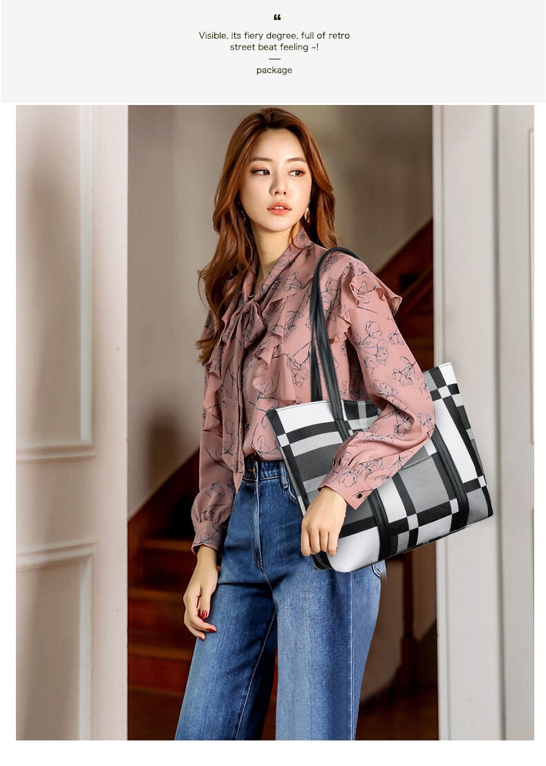 Specifications: Material: High-quality PU leather with a soft, pebbled texture Design and Style: Fashionable patchwork plaid pattern with a classic square silhouette Usage and Purpose: Versatile for various occasions, from casual outings to work Capacity: Large capacity with an internal mobile phone bag for organization Closure Type: Secure zipper closure for peace of mind Lining Material: Durable polyester lining for easy maintenance Features: |Late Spade Bag|Kate Spade Margaux Large Work Tote|Leather Handbag And Purses| **Elegant Design and Functionality** The TRAVEASY 2024 Fashion Patchwork PU Leather Plaid Women Tote Bags are a testament to style and practicality. The bag's design is a fusion of classic plaid and modern patchwork, making it a standout accessory for any fashion-forward woman. The square silhouette and double root shoulder straps offer a comfortable carry, while the soft PU leather ensures a luxurious feel. The bag's large capacity is perfect for carrying essentials, with an additional mobile phone bag to keep your devices secure. **Versatile and Durable** This tote bag is not just a fashion statement; it's a reliable companion for various scenarios. Whether you're heading to work, running errands, or enjoying a casual outing, the TRAVEASY tote bag adapts to your lifestyle. The solid exterior and soft, pebbled texture make it a durable choice for everyday use. The secure zipper closure keeps your belongings safe, while the polyester lining ensures easy maintenance. **A Bag for Every Occasion** The TRAVEASY tote bag is a versatile accessory that complements a variety of outfits and occasions. Its plaid pattern and patchwork design make it a stylish choice for both casual and formal events. The bag's large size is perfect for carrying books, laptops, or other essentials, making it an ideal choice for students, professionals, or anyone who values organization and style. The TRAVEASY tote bag is not just a bag; it's a statement of elegance and practicality.