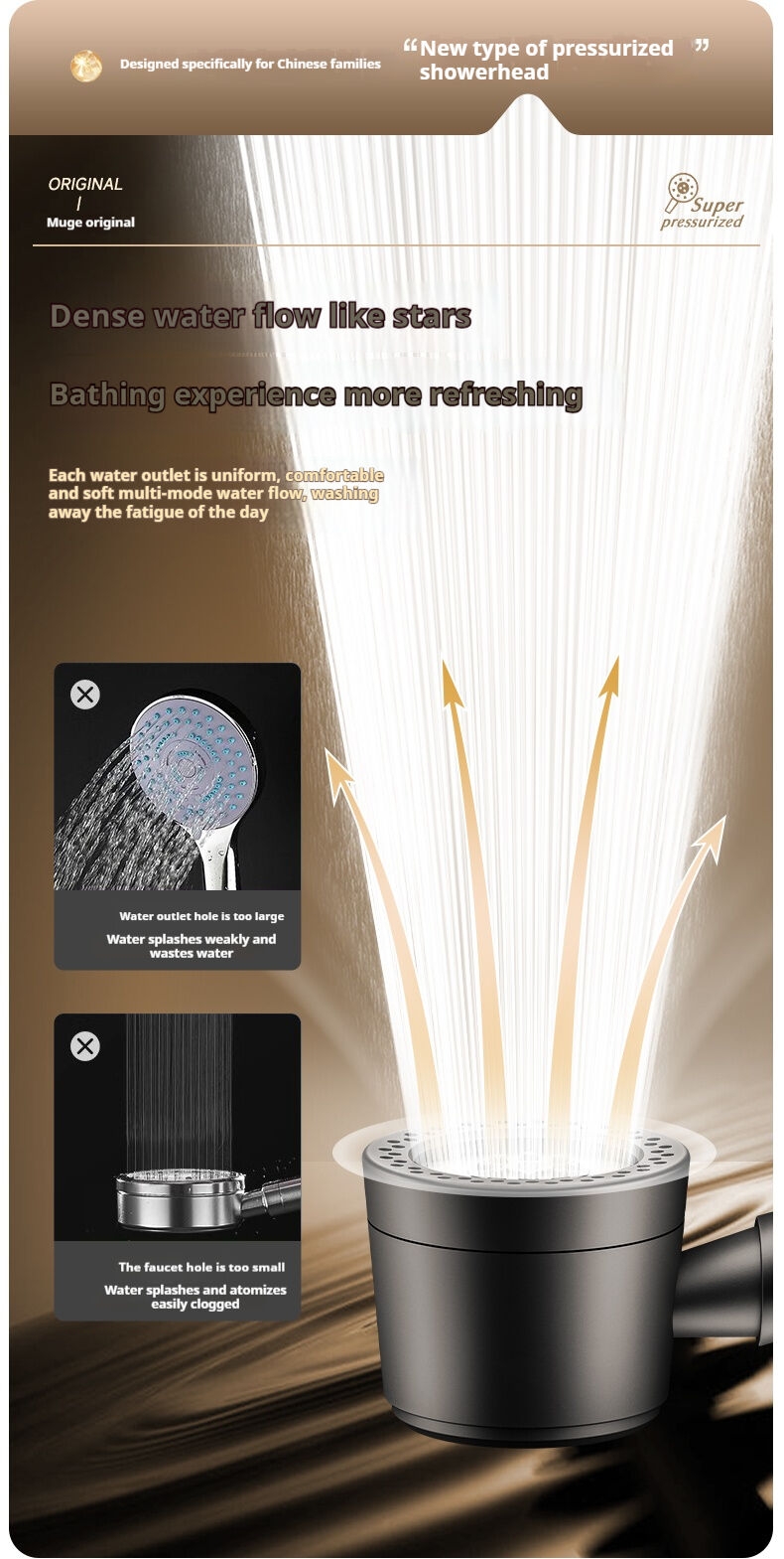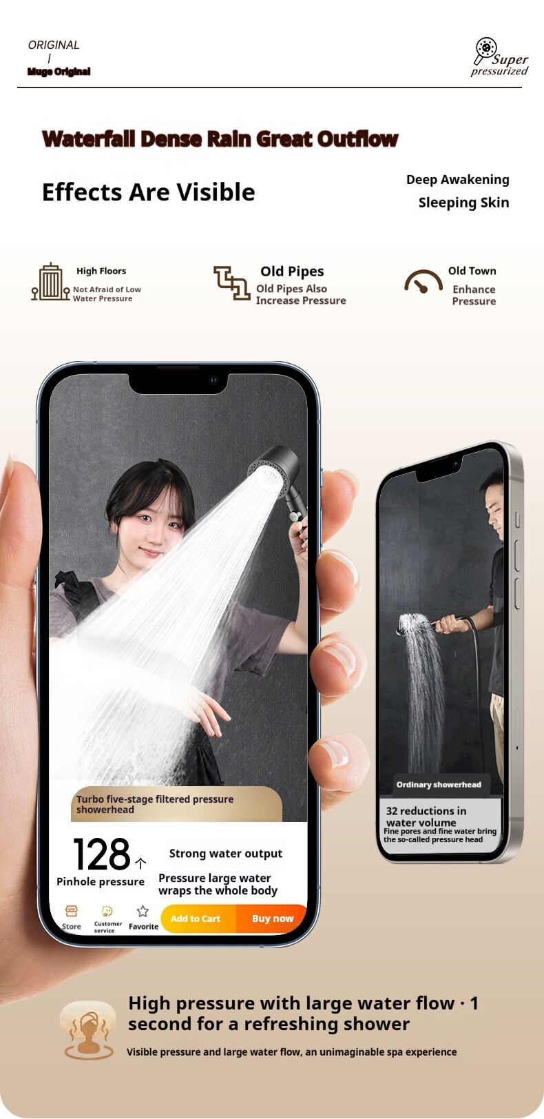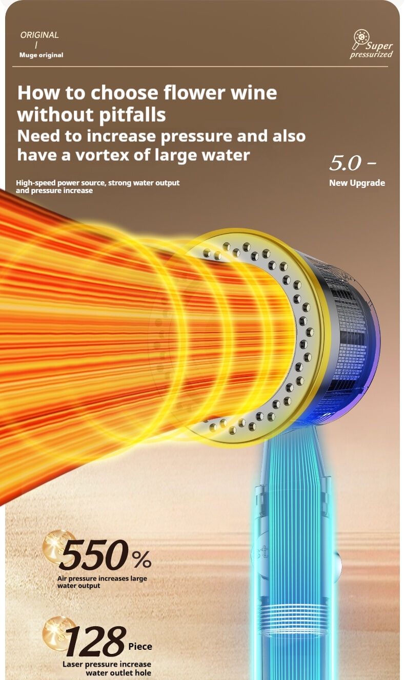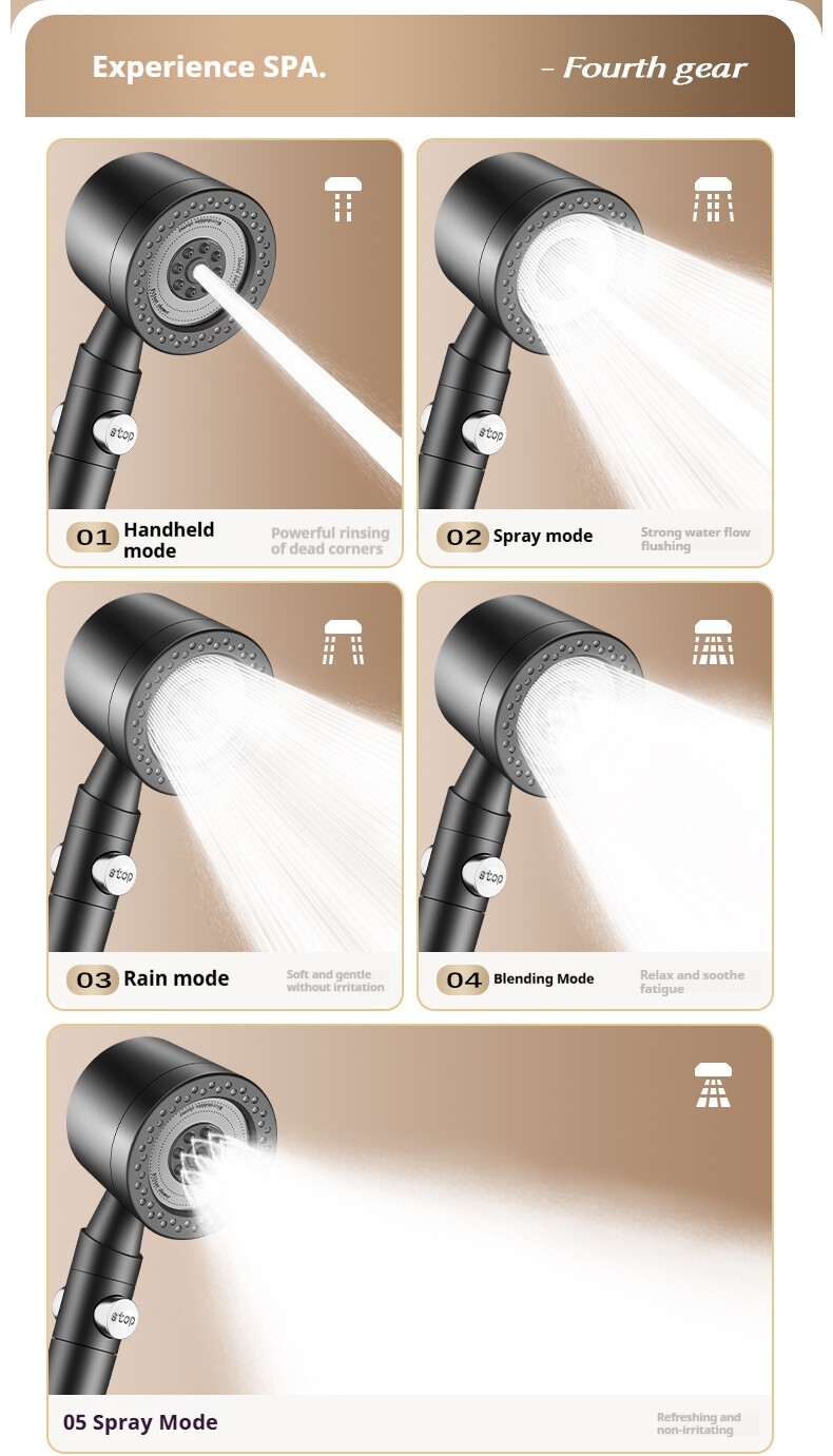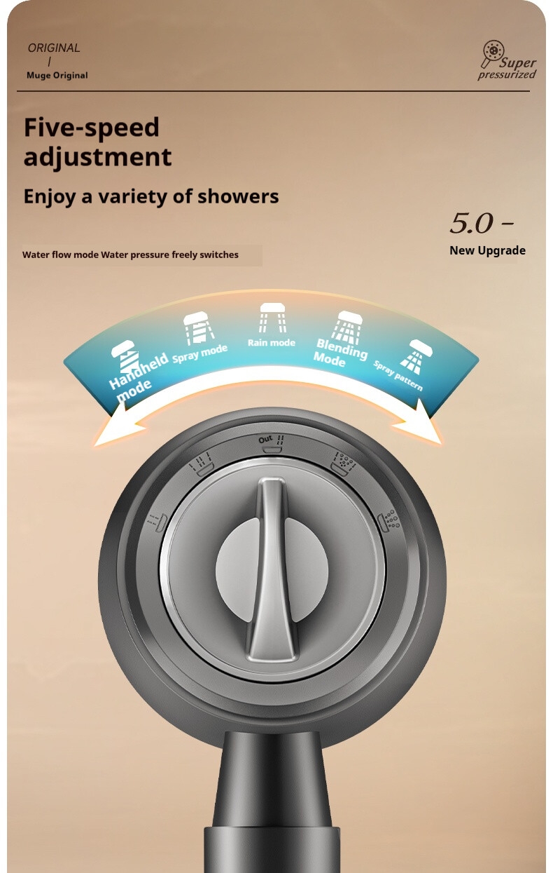 ① 5-Level Adjustment, allowing for flexible switching of water flow and pressure;