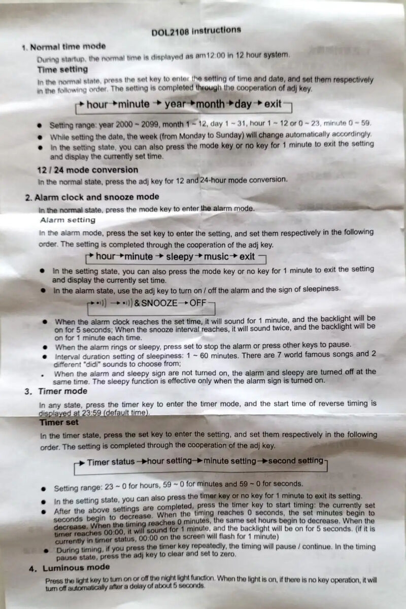 Children's digital alarm clock with luminous function, novel alarm clock style, set clock, alarm clock, timer as one. Temperature display, calendar display, and backlight. Is a cost-effective desktop alarm clock. Built-in English operating instructions.