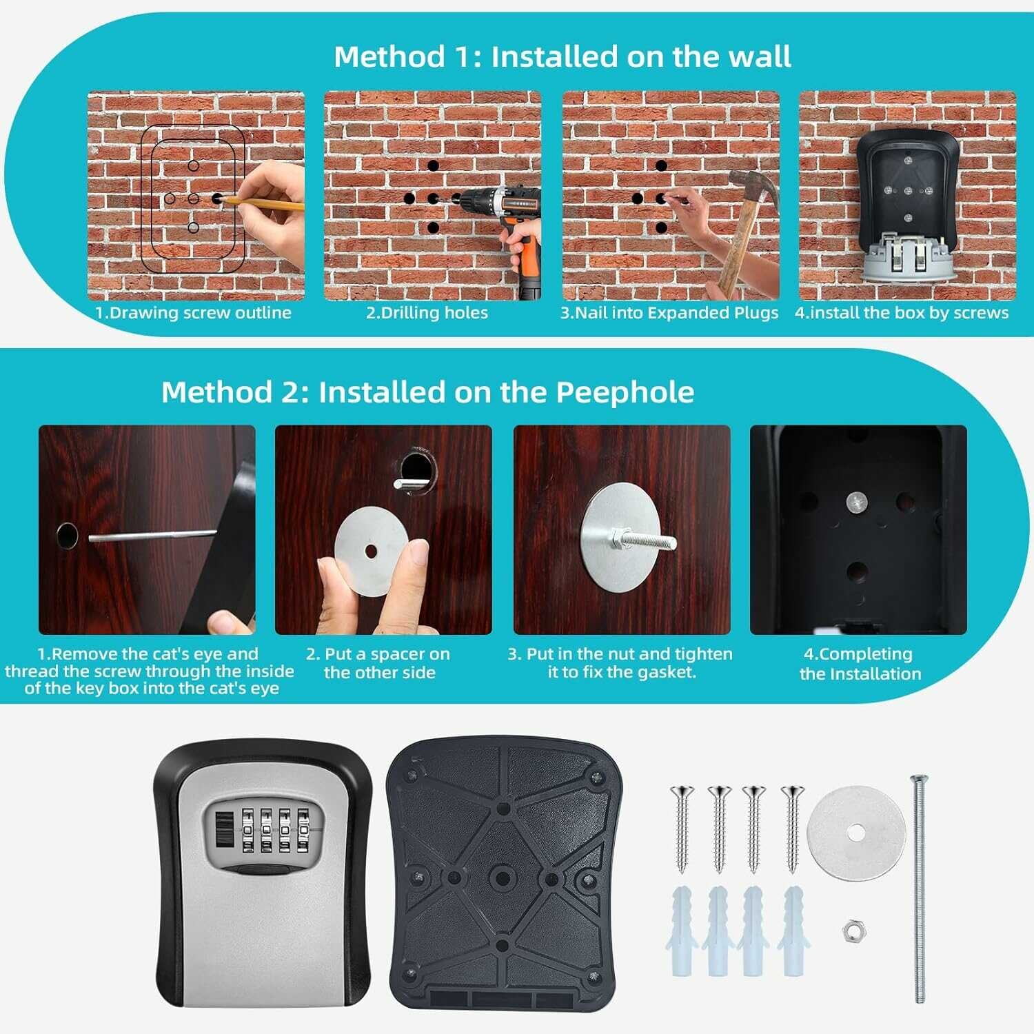 Easy to Install: Outdoor/Indoor wall mounted combination key cabinet comes with instructions and fittings kits. The lock box is preset to open on 0-0-0-0, remember to reset your own four digit combination lock.