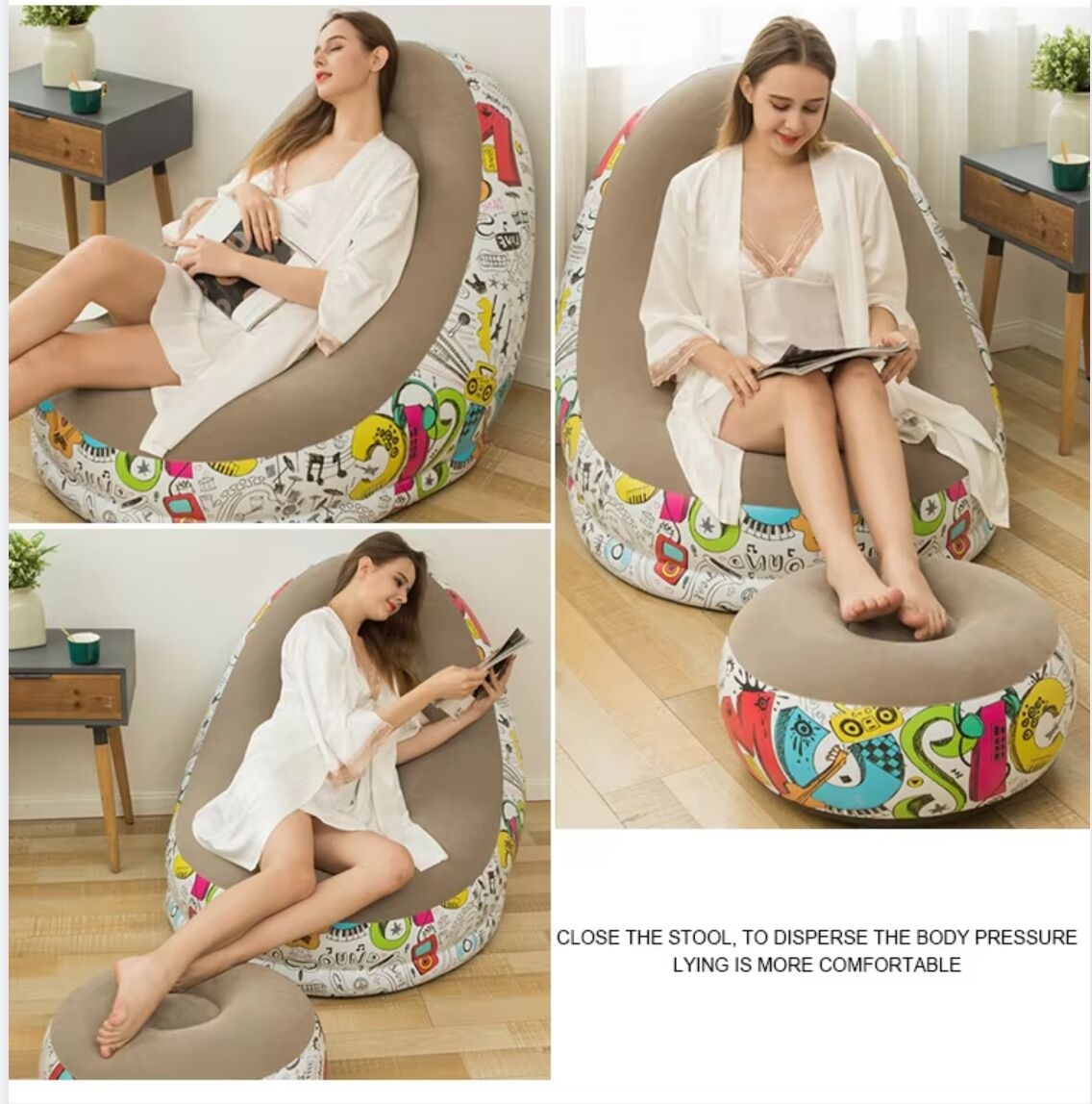 3PCS Inflatable Sofa Chair, PVC Lounger, Cushion Fluffy Sofa, Living Room Supplies Outdoor Camping