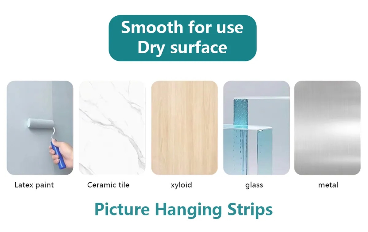Surface Prep Works -- picture hanging strips before use, clean the desired surface with rubbing alcohol to remove grime and dust to allow the no damage wall hangers to bond to the surfaces, work on a variety of smooth surfaces, including tile, metal, glass, laminate, finished wood, etc, plastic, painted walls.