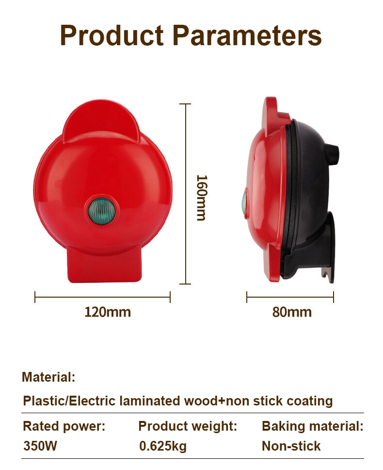 Specifications: Color: Red Material: ABS Power: 350W Functions: Multi-function, Home Use, Heating, Baking, Oven Cooking Dimensions: 16 x 12 x 8 cm Weight: 1 kg Package Includes: European Breakfast Maker*1 User Manual*1