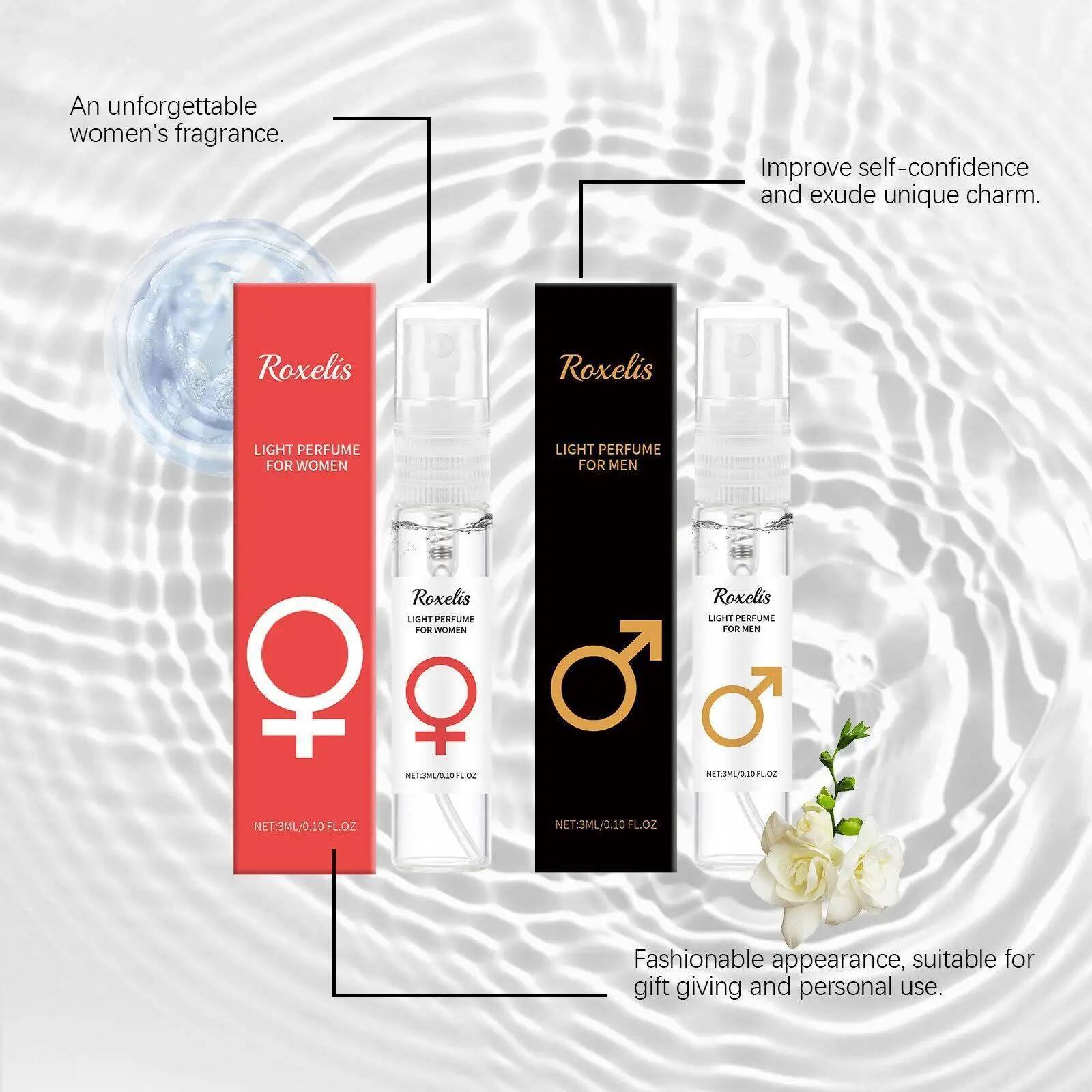 Features: 1. A fragrance infused with male and female pheromones, immersing you in a captivating aroma. 2. For optimal diffusion, spray on the neck, ears, wrists, chest, or other parts of the body. 3. The fragrance diffuses naturally when two people face each other and lightly touch necks. Spraying behind the ears creates a seductive atmosphere during an embrace. Spraying on the chest evokes a desire to hug and strengthens suggestive connotations. It can also be added to shampoos, lotions, and skincare products. 4. This fragrance can be applied to the body or sprayed directly on walls, furniture, papers, documents, and appliances to create various attractive effects. It is especially suitable for spaces with a significant gender imbalance or low occupancy rate, helping to balance emotions between men and women. How to Use: Apply an appropriate amount evenly to desired areas, such as wrists, behind the ears, and neck. It will naturally release a captivating fragrance. Precautions: Keep out of reach of children. Do not ingest. Wash hands before use for best results. Discontinue use if skin irritation or rash occurs.