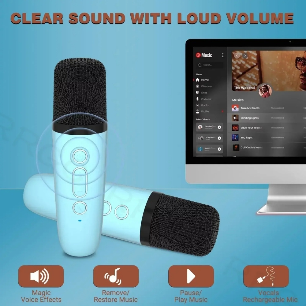 Mini Karaoke Machine, equipped with 2 wireless microphones; Bluetooth speaker with microphone set; Party home music player