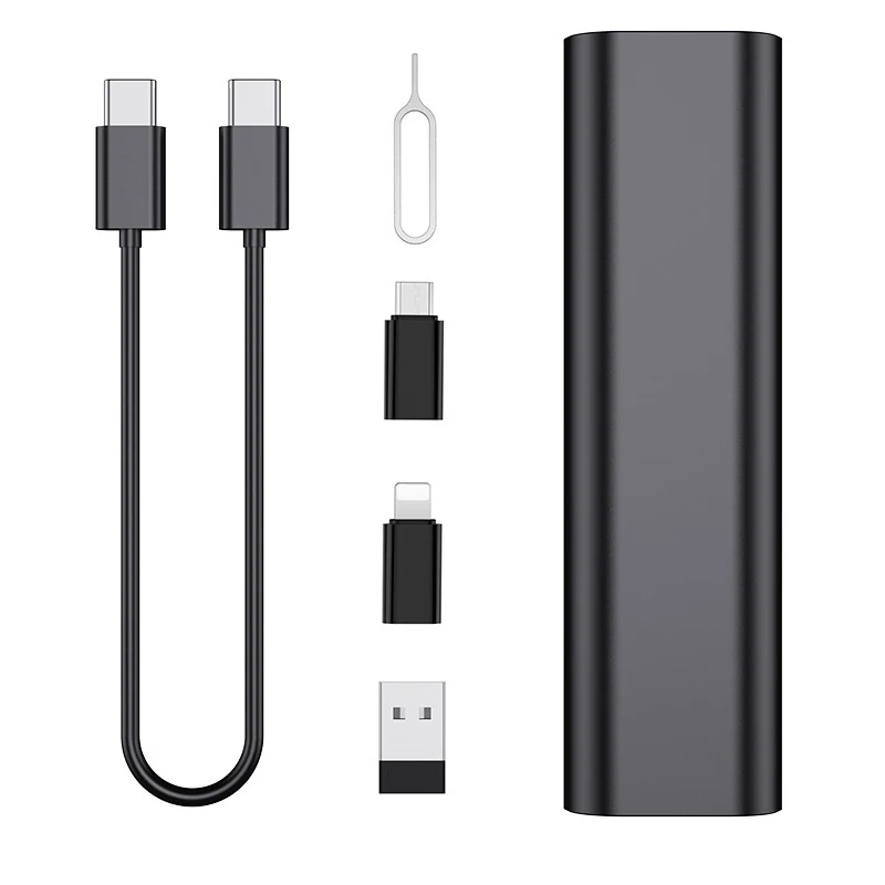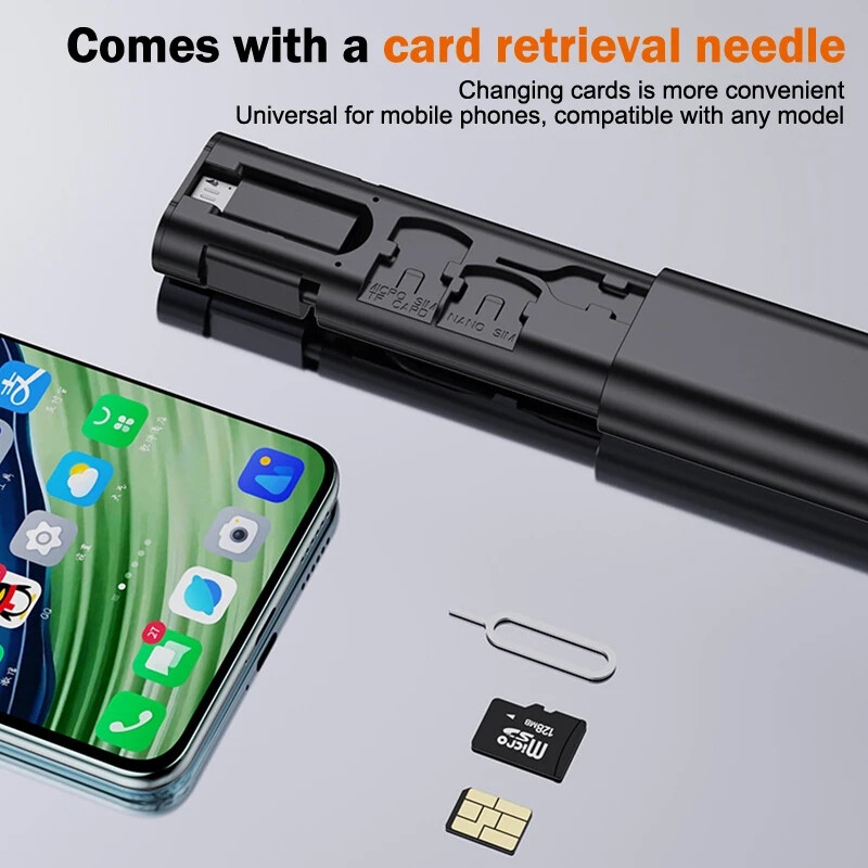 Multifunctional Data cable set USB conversion storage box Describe: USB data cable conversion storage box, various charging cable converters, micro data transfer tool, including SIM card slot tray ejection pin. Compact and convenient, with multiple converter adapters included, you can easily slip this travel adapter USB C into your purse or handbag wherever your travels take you. When you have the opportunity to travel to other countries, you can change the SIM card to your phone. It has a place to safely store your SIM cards and an ejection tool to eject them. Features: 1. All-in-one charging: No need to fumble around for the right connector. This portable storage case contains everything you need to charge and sync your devices. Storage box protects cable ends and prevents cables from getting tangled in the bag. 2. Durable Material: All adapters are made of scratch-resistant aluminum alloy. The internal copper wires are larger and thicker than regular cables, helping to charge your phones, tablets, laptops and more faster and transfer data. 3. Safe charging and data transmission: The mini digital gadget has four different ports for conversion, charging, transmission, etc. Includes USB C cable with 3 USB adapters, everything you need to charge your devices and transfer data. 4. Phone and tablet holder: This USB to Lightning adapter can also be used as a phone or tablet holder, you can use it whenever you need a phone holder to hold your phone or tablet. 5. Multifunctional storage box: This 9-in-1 cable box comes with 3 storage slots, 2 for nano SIM cards, 1 for micro SIM card storage (SIM card not included) and a SIM eject tool, Helps you exchange and store your SIM cards. Compact and convenient, you can easily slip this travel adapter USB C into your purse or handbag no matter where your travels take you. Specification: Colour: Black Packing size: 10.7*3.2*1.9CM Weight: 0.05kg Package includes: Multifunctional data cable set*1