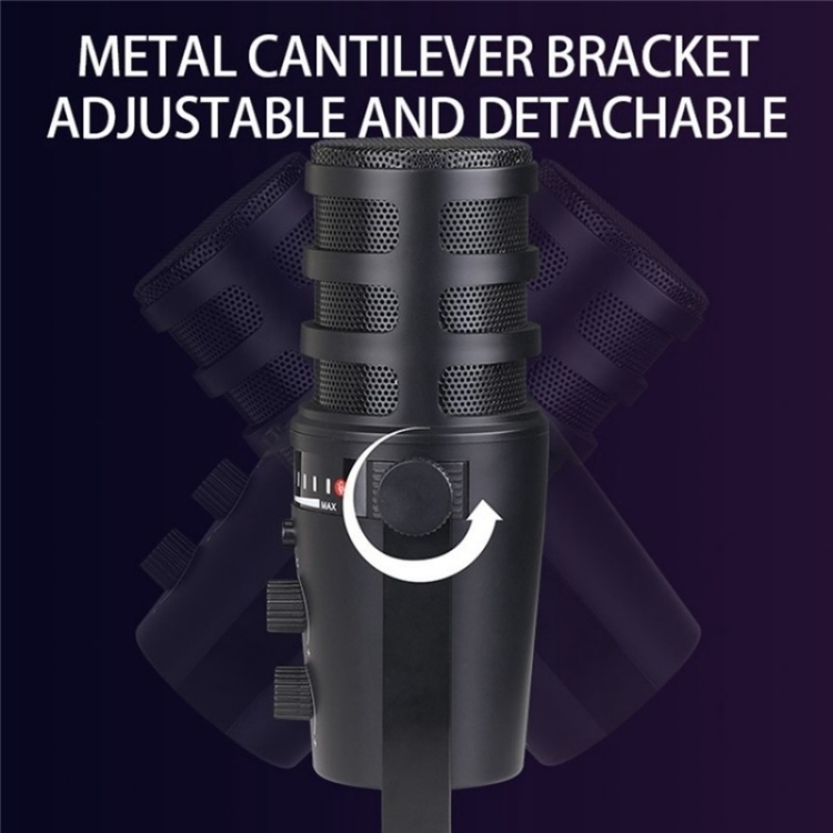 5. Ear Monitoring Function: The microphone is equipped with a 3.5mm headphone jack, which is connected to the headphone monitoring hole. Can hear the sound of the computer and one's own voice