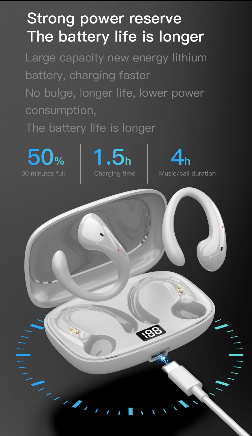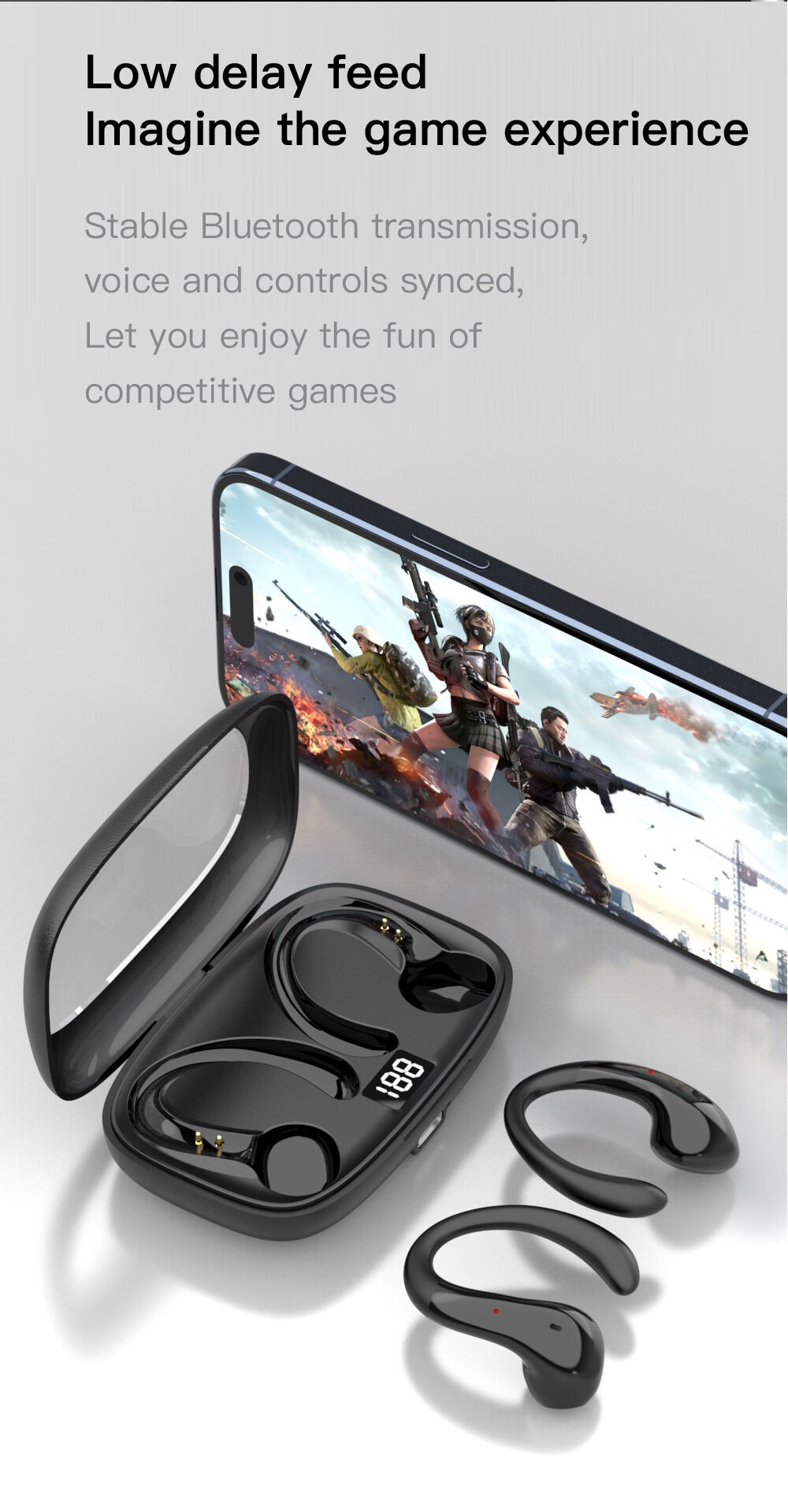 Features: Long battery life, call function, support for music, digital display screen, low latency for esports