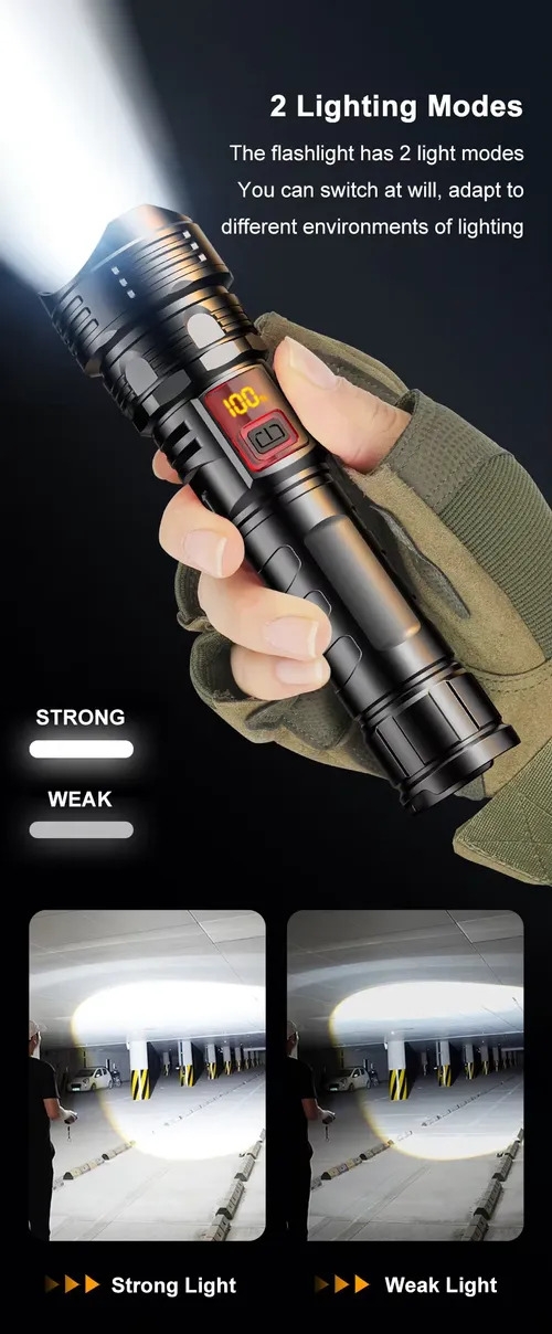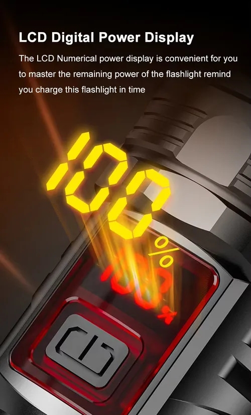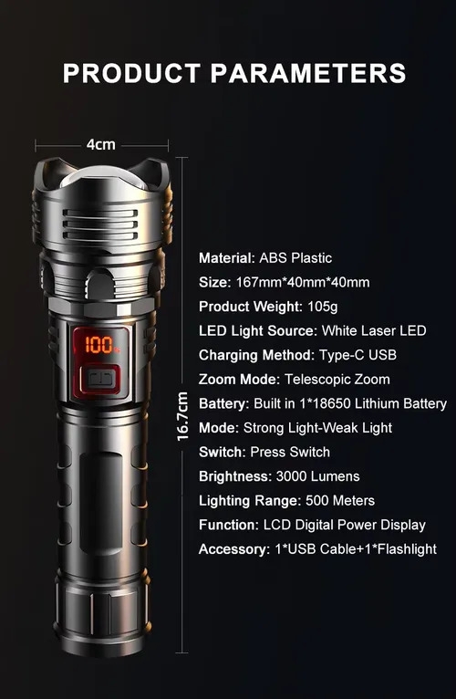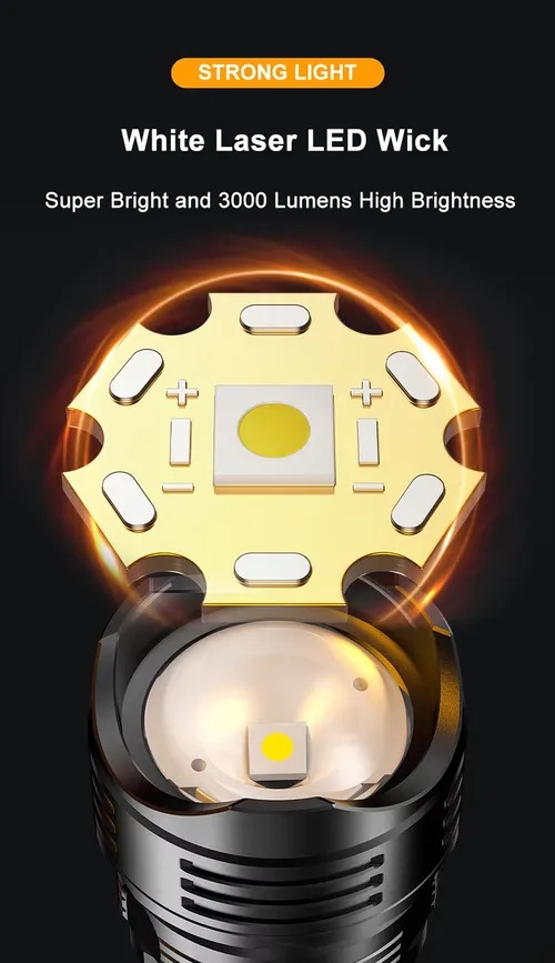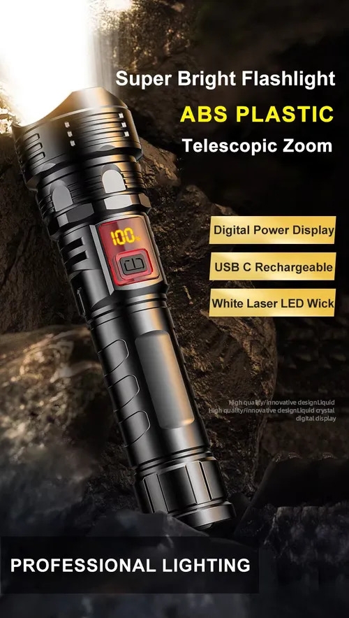 Newest ABS Plastic Flashlight LCD Digital Power Display 3000 Lumens White Laser LED Zoomable Outdoor Torch Emergency Flash LightGH₵ 250Add to cart