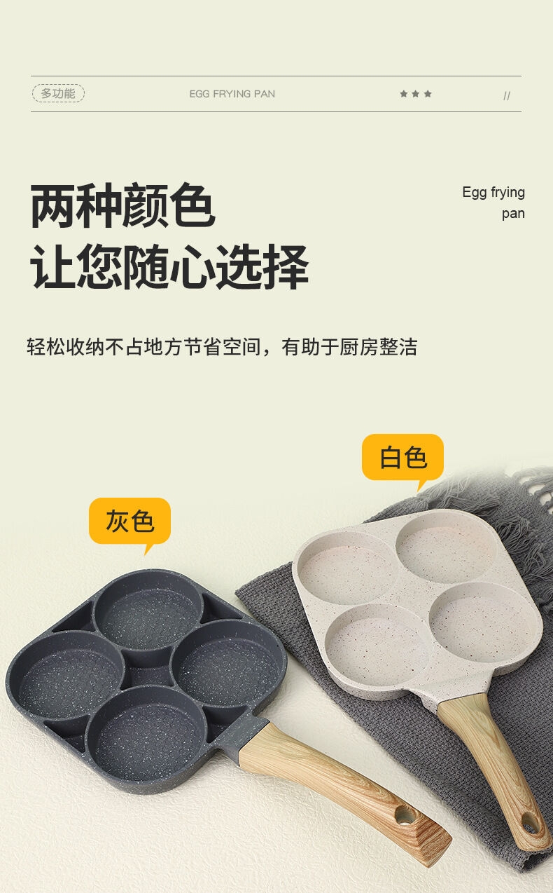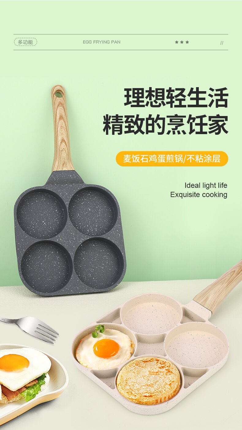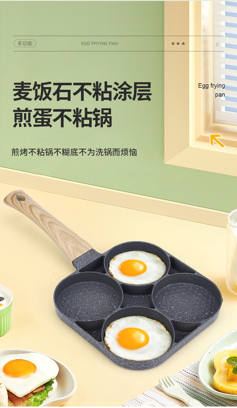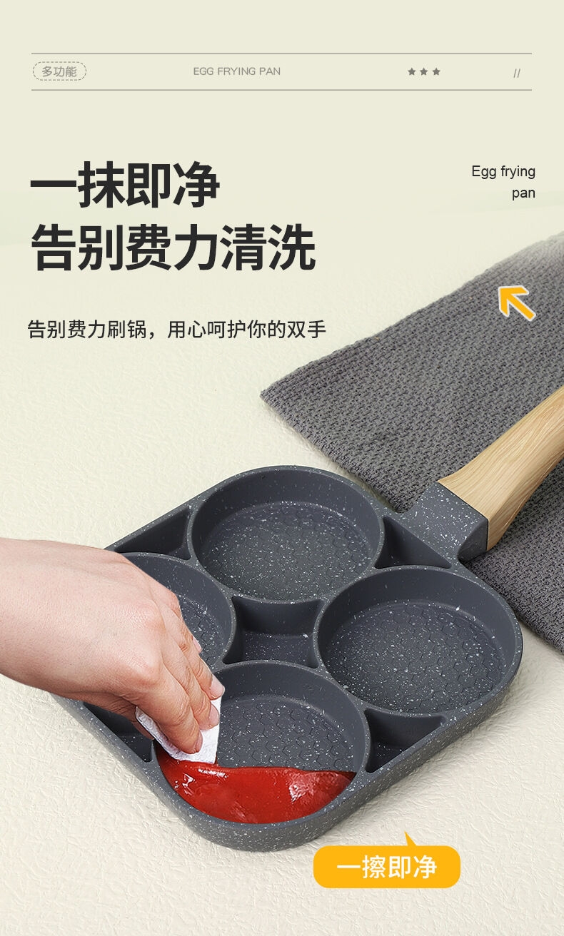 Product name: Four-hole omelette panFrying pan material: Honeycomb/medical stoneProduct application: Open flame and induction cookerHandle material: Aluminum alloy + bakelite handleSpecial function: Non-stickCare instructions: Hand wash only1 verified rating