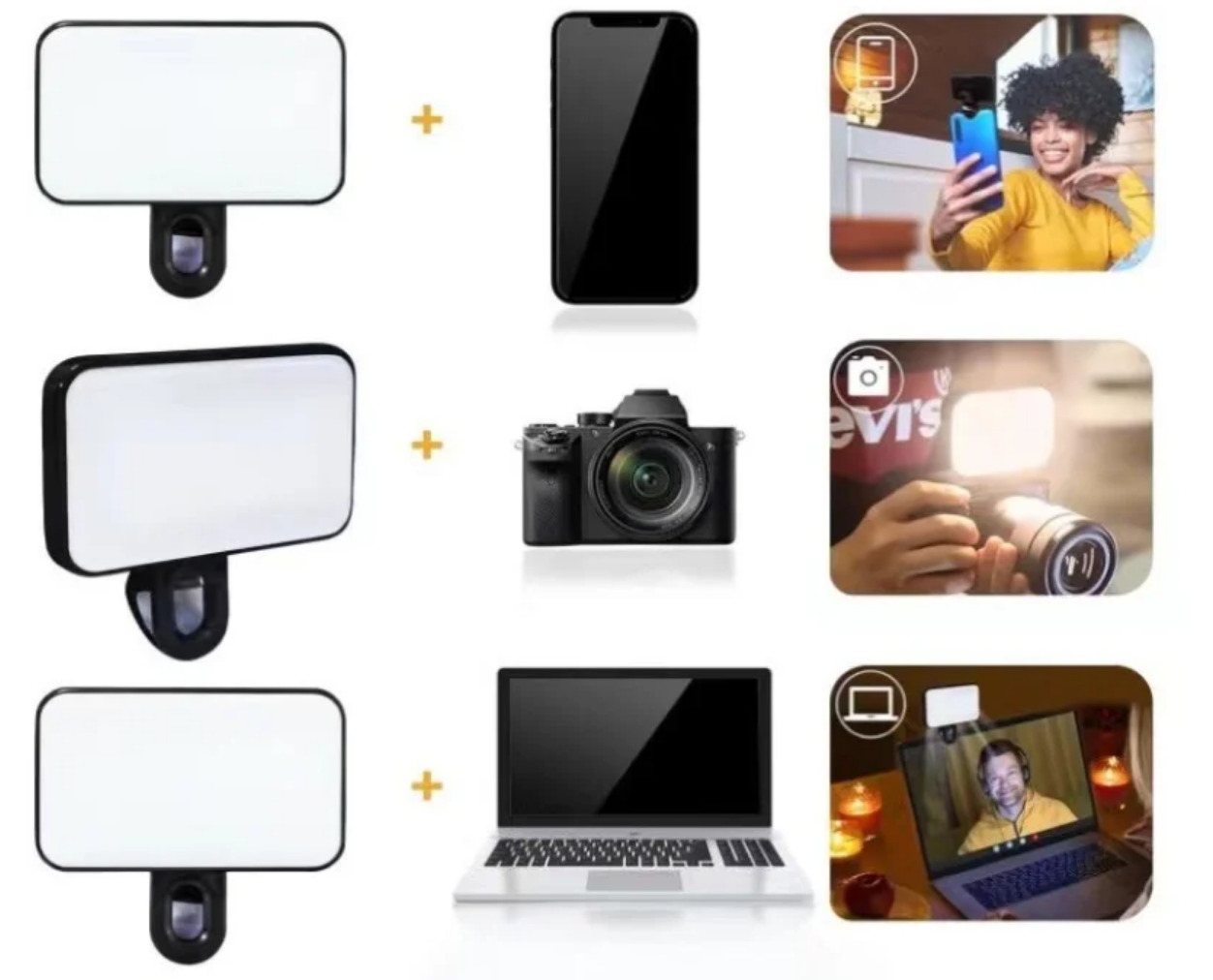 This mini rechargeable LED light isn't just ideal for selfies and smartphone videos; it's also perfect for improving lighting during video conferences, virtual meetings, or PC sessions. Thanks to its compact design, this mini rechargeable LED light easily attaches to the top of a camera or tripod, providing even and soft lighting for your shots.