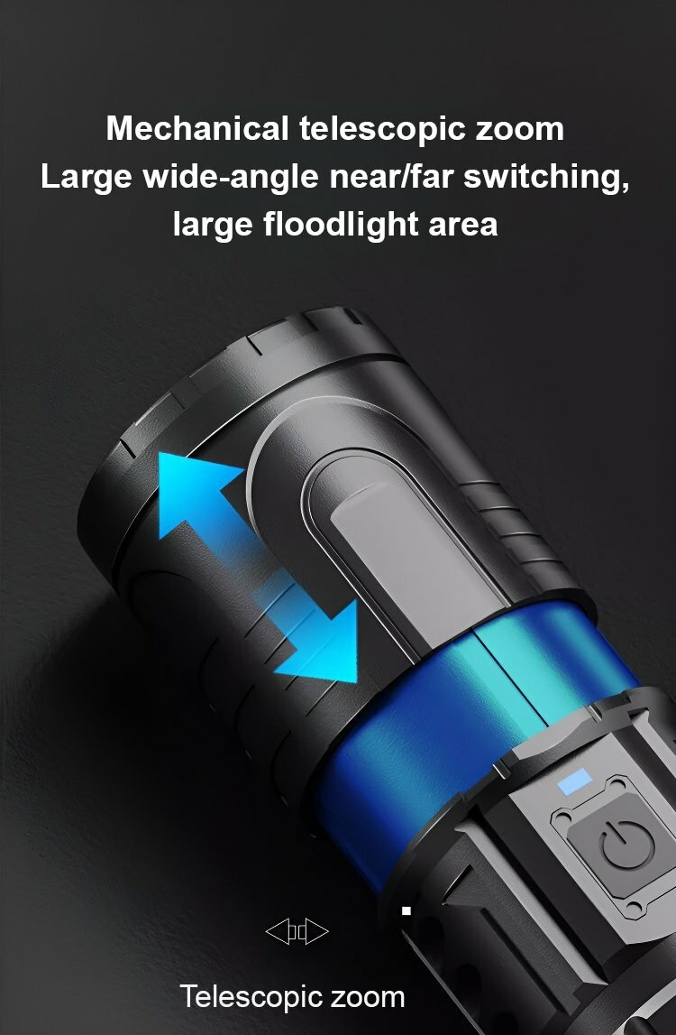 Powerful Illumination with Frog-Eye Lens: The concentrated power of three high-brightness LED cores, coupled with a frog-eye lens, produces remarkable and focused lighting. The ingenious central one-key smart switch allows effortless control over brightness levels.