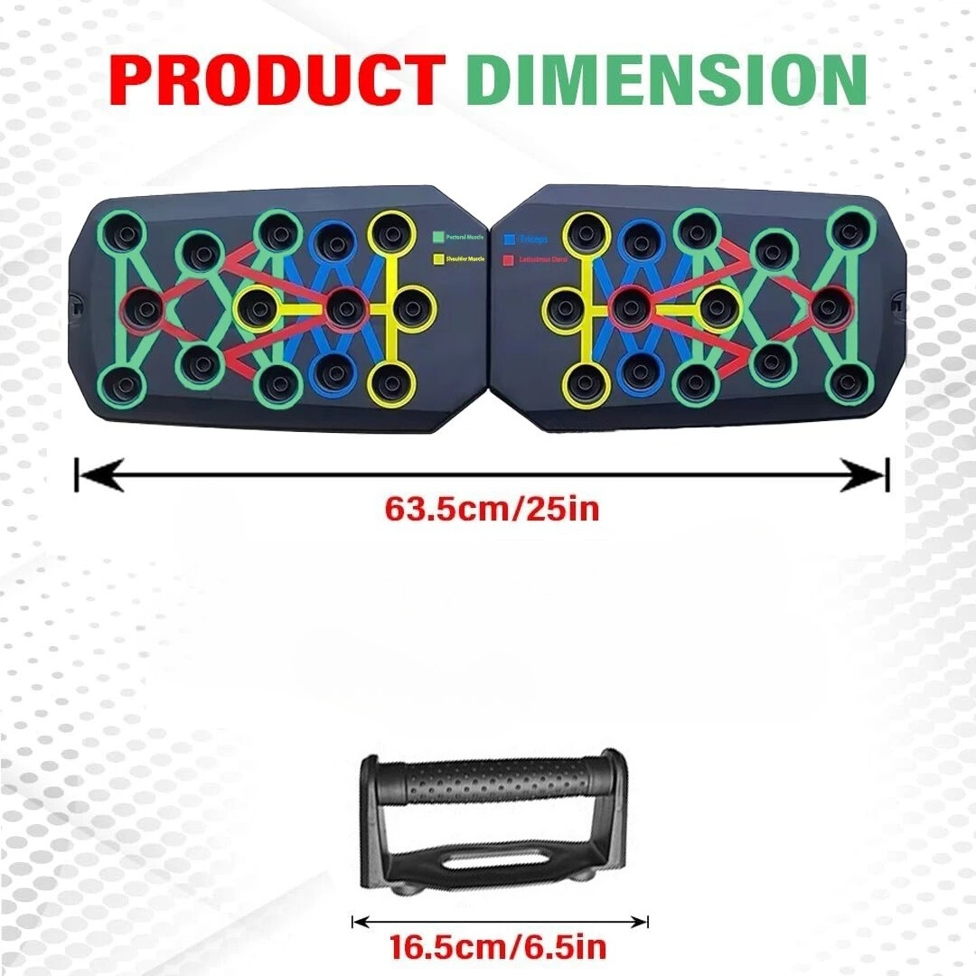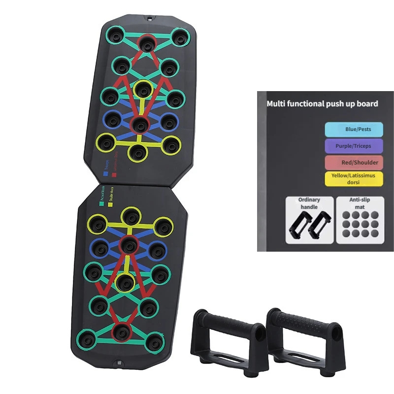 1. Different color-coded push plates focus on the muscles to be exercised.