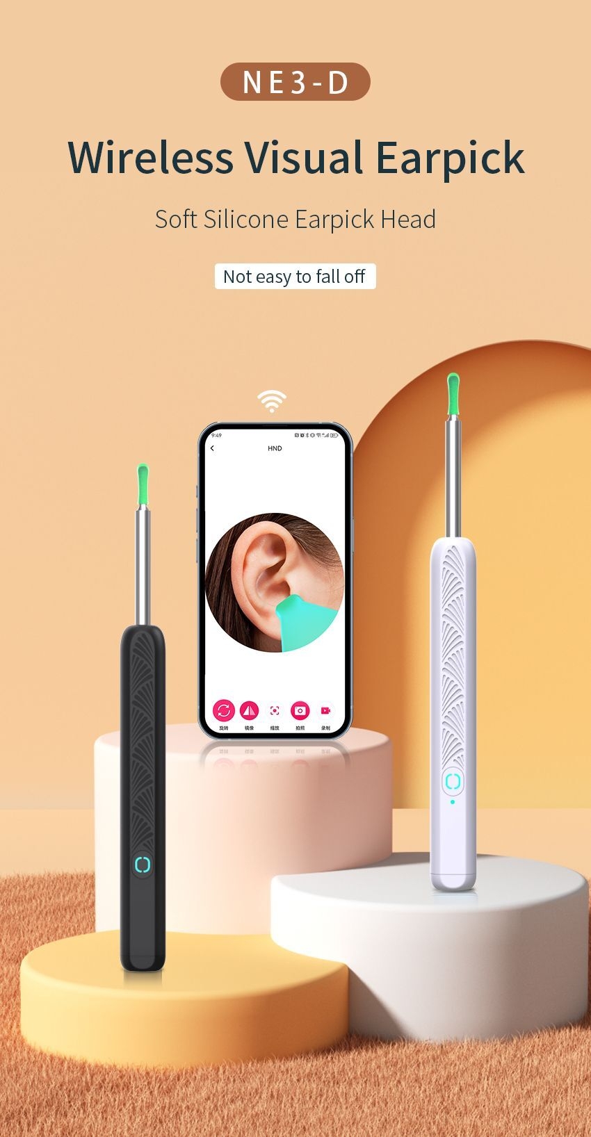 【Easy to Use & Wide Compatibility 】 Scan QR code on manual ,Download and install the APP on your device, Press and hold the power button on top of device to turn on the ear cleaning rod and then connect WiFi(Name :HNDEC-xxxx) with your device .The APP works with all of Android smartphone / tablet and IOS iPhone / iPad.
