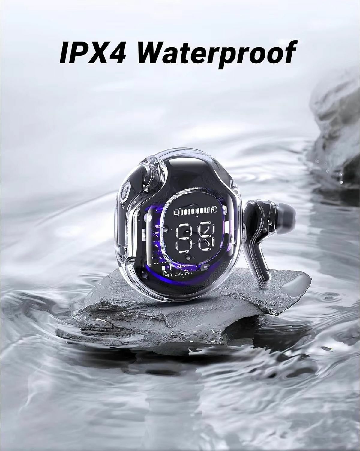 Sport Wireless Earbuds – Sleek Transparent Shell High-Fidelity Playback Waterproof Earphones with Ergonomic Fit, Touch Sensor, Stereo Bass, Digital Interface for Jogging, Climbing, Fitness Training