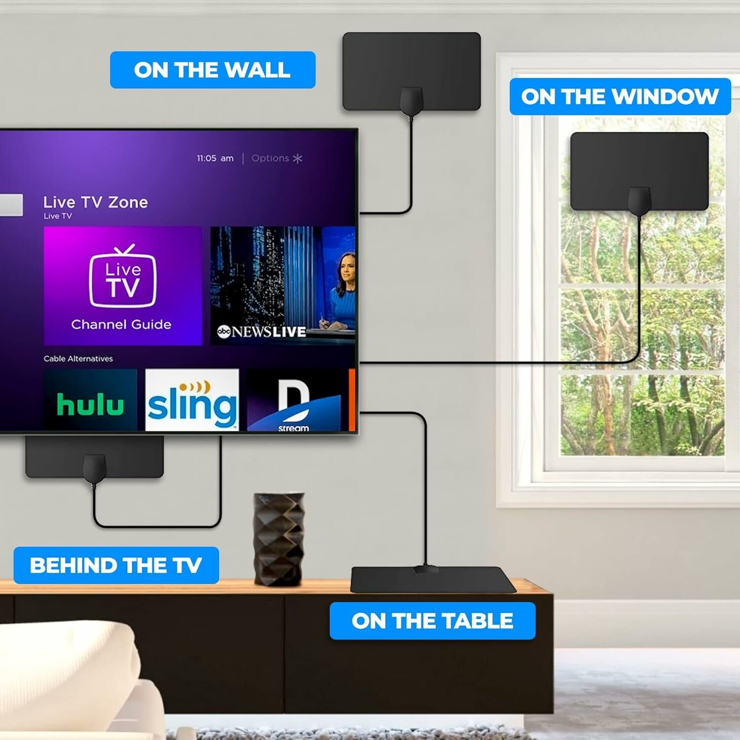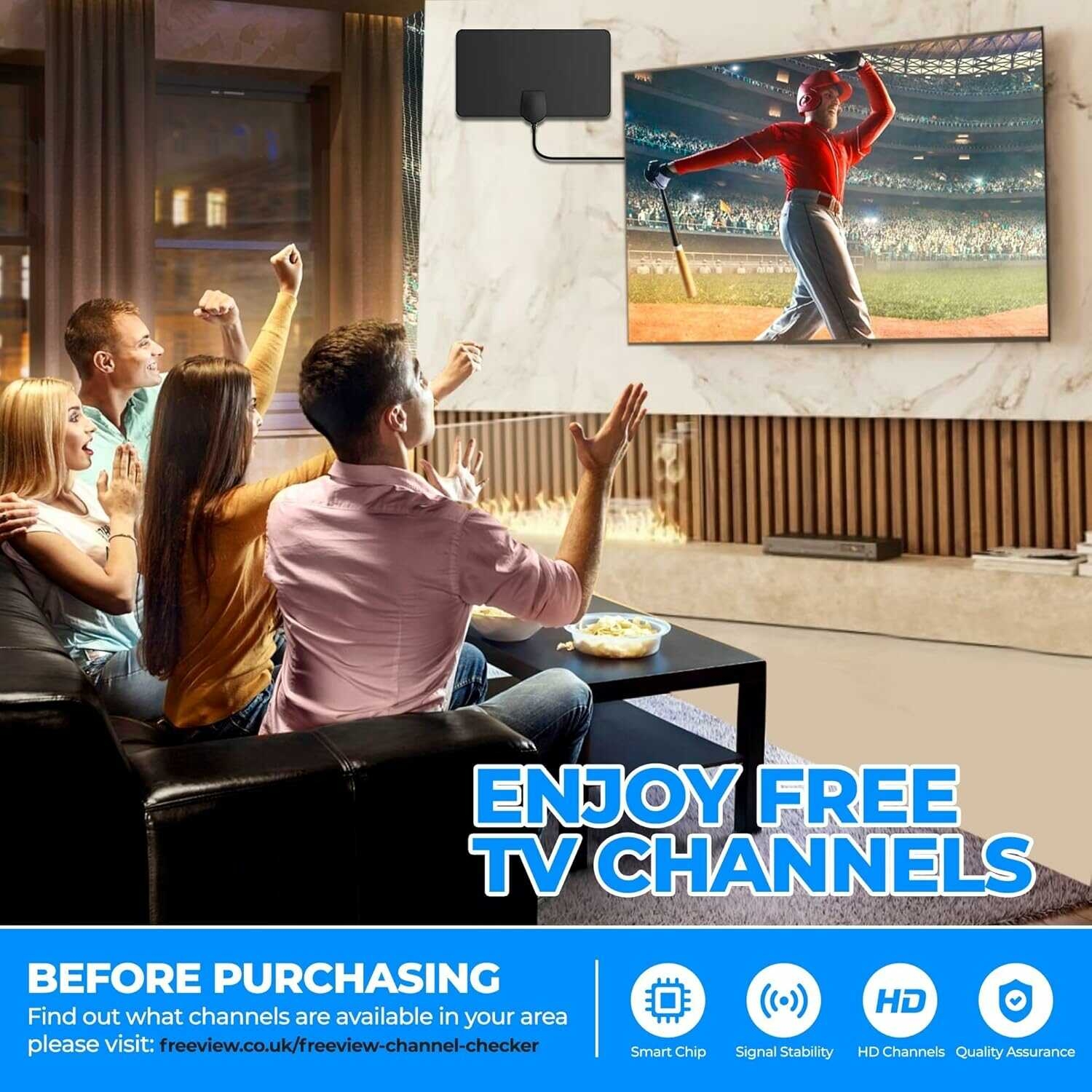 【ULTRA THIN DESIGN】This ultra-thin TV Ariels is a type of TV antenna that is discreet and slim, making it easy to install and blend into your living space; Ultra thin design but high performance will improve the signal of your TV