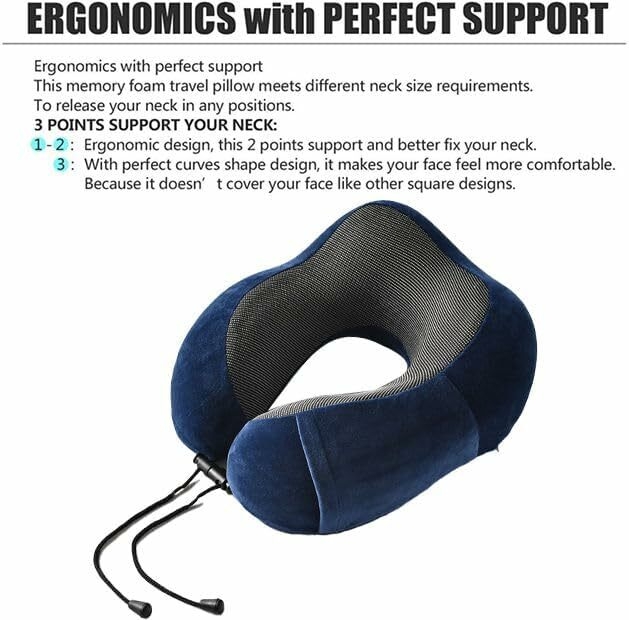 Ergonomic Neck & Head Support: Contoured pillow design cradles your neck and head to prevent pain and stiffness during long journeys.