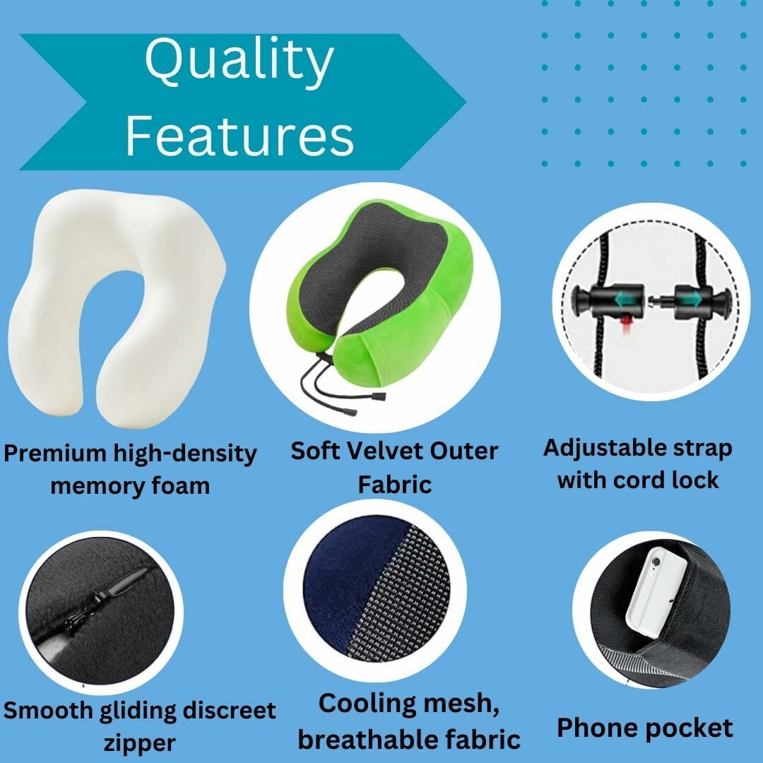 Ultimate Travel Comfort: All-in-one set includes a plush memory foam neck pillow, soft sleeping mask, and noise-blocking foam ear plugs—everything you need for restful sleep on the go.