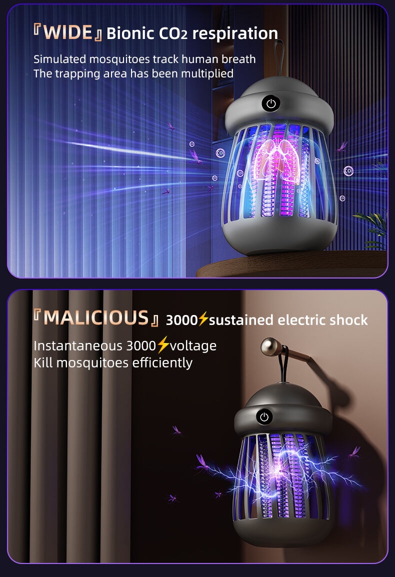 ✔ 365nm ultraviolet light precisely attracts mosquitoes, high-voltage electric grid instantly kills them, highly efficient mosquito killing.