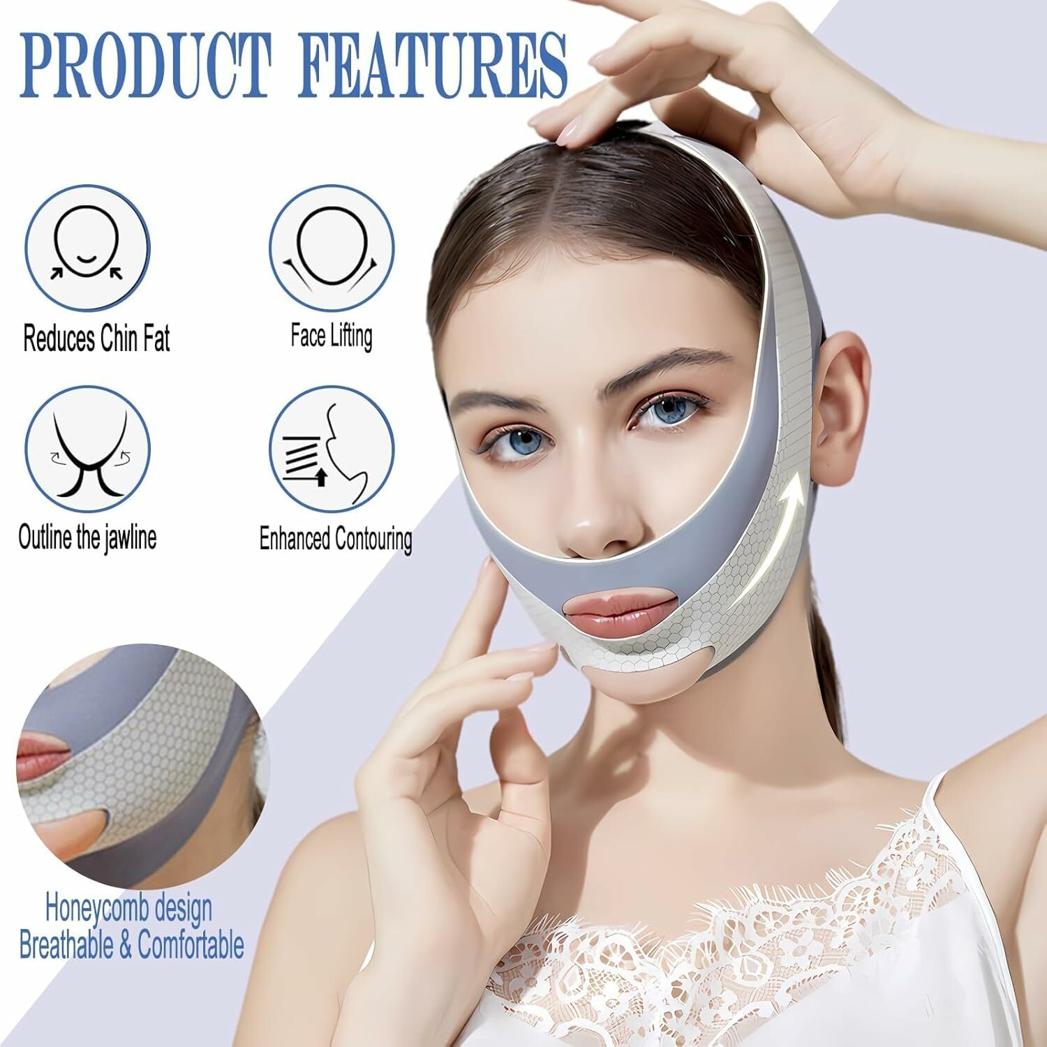 【Double Chin Strap 】You will receive 1pcs double chin strap. The chin strap is designed with double-layer pressurized design, which can be used for double chin and face lift, jawline exercise. It can effectively tighten the excess fat under the chin and tighten the double chin, so that you can easily have a delicate small face, chin strap is suitable for women with double chin.