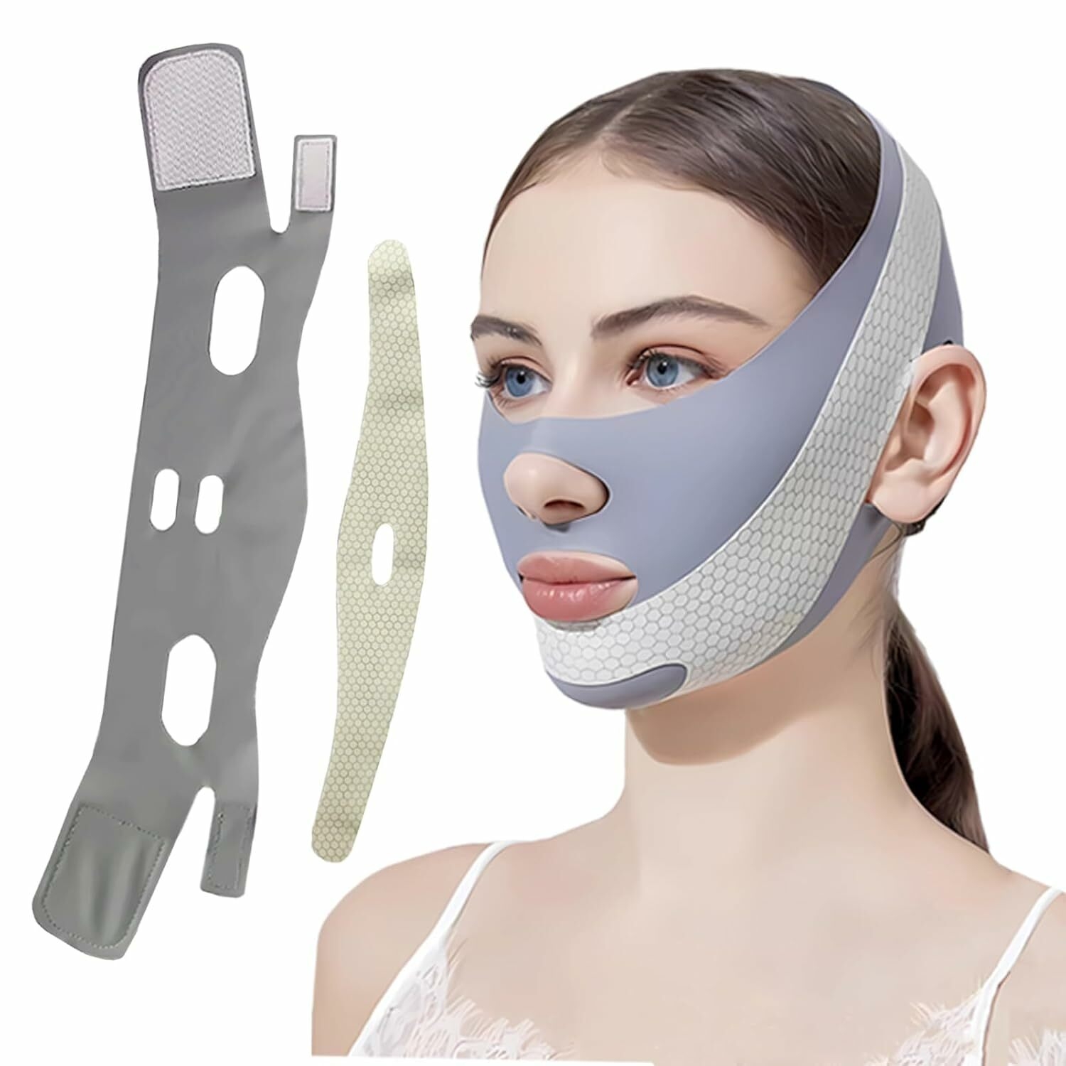 【Suitable for All Face Shapes】This face slimming belt fits the contours of your face, 360° wrapping and stretching. With removable pressurized strip design, the chin strap can increase from single layer pressure to double layer pressure, which can gradually and effectively tighten and lift the chin. Double velcro design, free stretching adjustment, comfortable and no strangulation face.