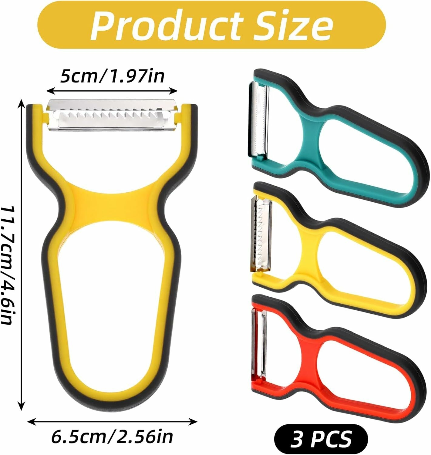 Y Peelers for Kitchen, 3Pcs Stainless Steel Vegetable Peeler - Multifunctional Potato Peelers for Fruits Carrot Kitchen Utensils (Red, Yellow, Green)