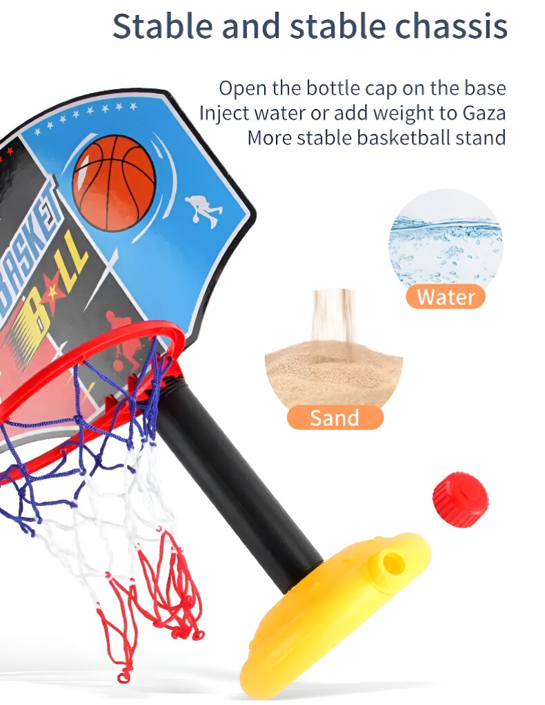 The height can be adjusted, allowing flexible adaptation according to the child's age and height. From younger children to slightly older kids, everyone can use it, letting children of different ages enjoy the fun of basketball.