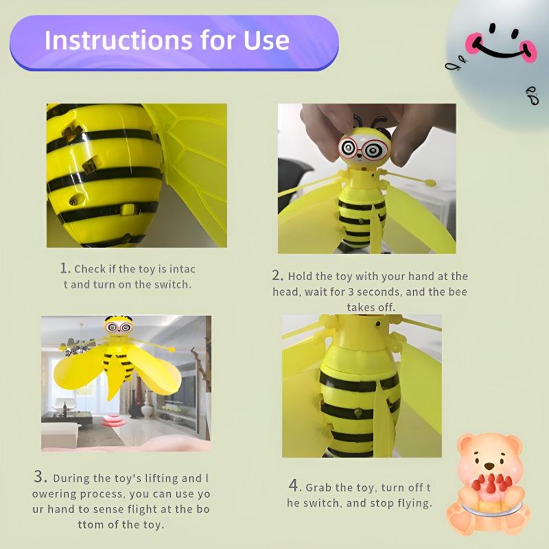 When this children's intelligent flying bee is turned on, it not only emits dazzling lights, creating a dreamy atmosphere, but also intelligently flies through gesture sensing, bringing unprecedented interactive experiences to children