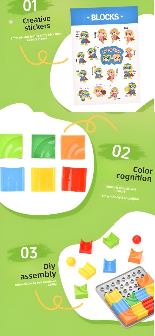 During the process of building blocks, children can also develop fine motor skills and spatial thinking, figuring out how to make the track more stable so that the marbles can pass through smoothly.