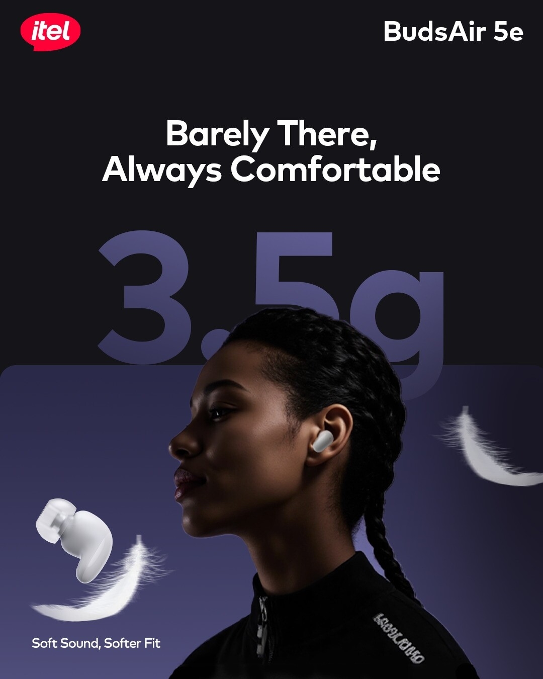 Experience premium audio with the Budsair 5e, engineered for extended listening sessions. These lightweight in-ear earbuds deliver an impressive 39-hour playtime, keeping your music flowing throughout your day. The sleek curved design fits comfortably in your ears while the included lanyard ensures portability and easy access. Advanced AI noise cancellation technology isolates distractions, allowing you to focus on what matters. Enjoy rich, deep bass that brings your favorite tracks to life with clarity and depth. Perfect for music lovers seeking quality sound in a compact, travel-friendly package.