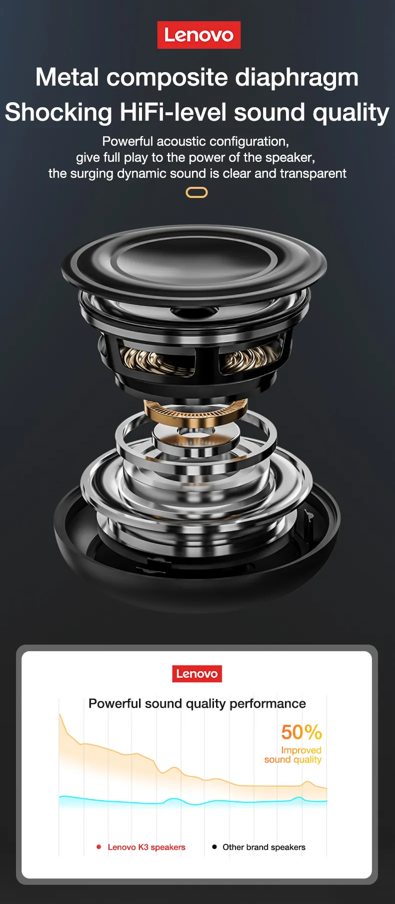Support TWS function, two of which can be connected to each other to obtain stereo sound and powerful rich sound.