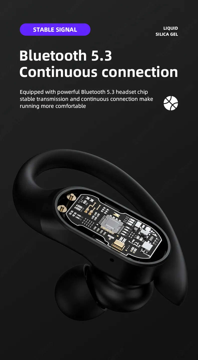 7. Bluetooth 5.3 earphone chip: The earphones use Bluetooth 5.3 earphone chips for stable transmission and continuous connection, allowing you to enjoy a more comfortable music experience during exercise.