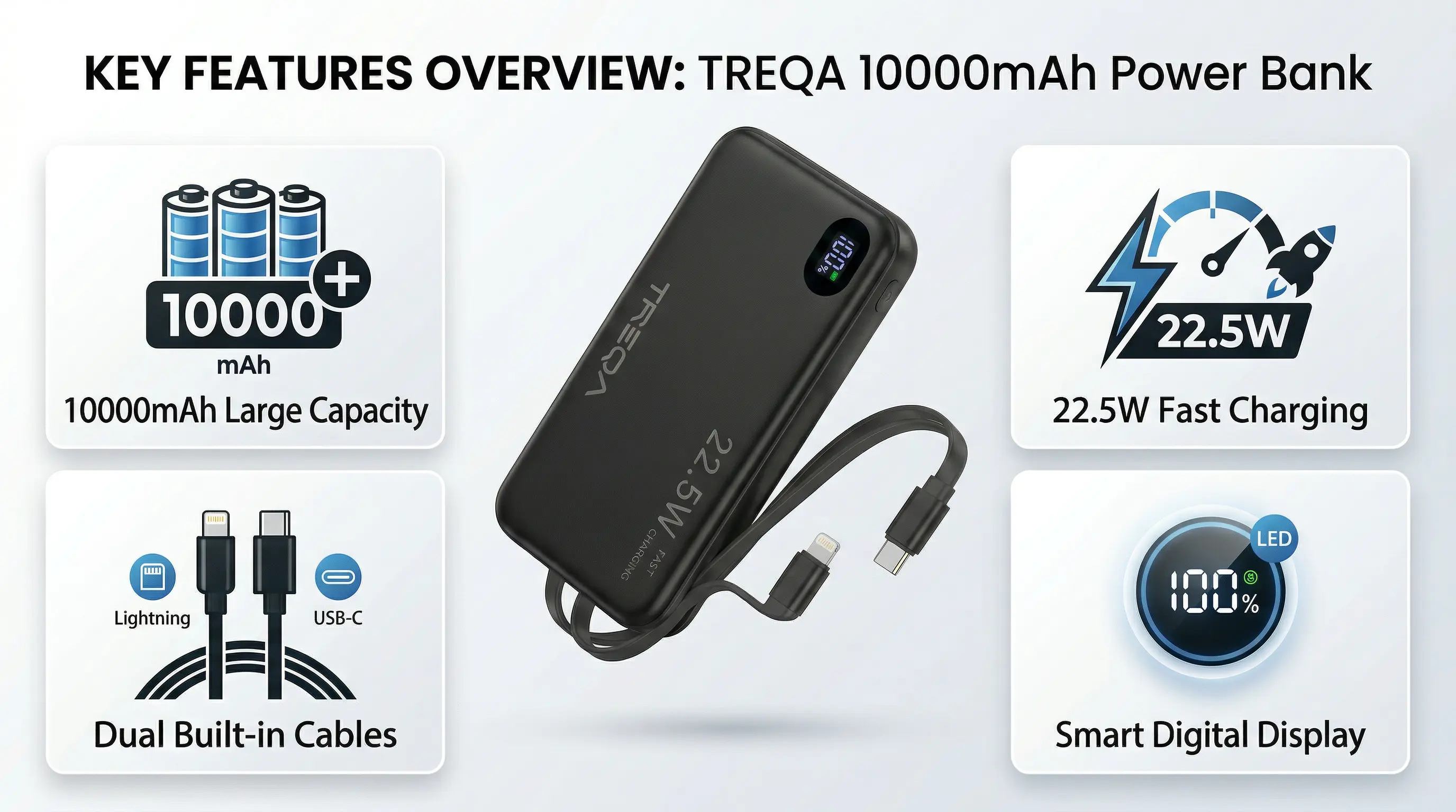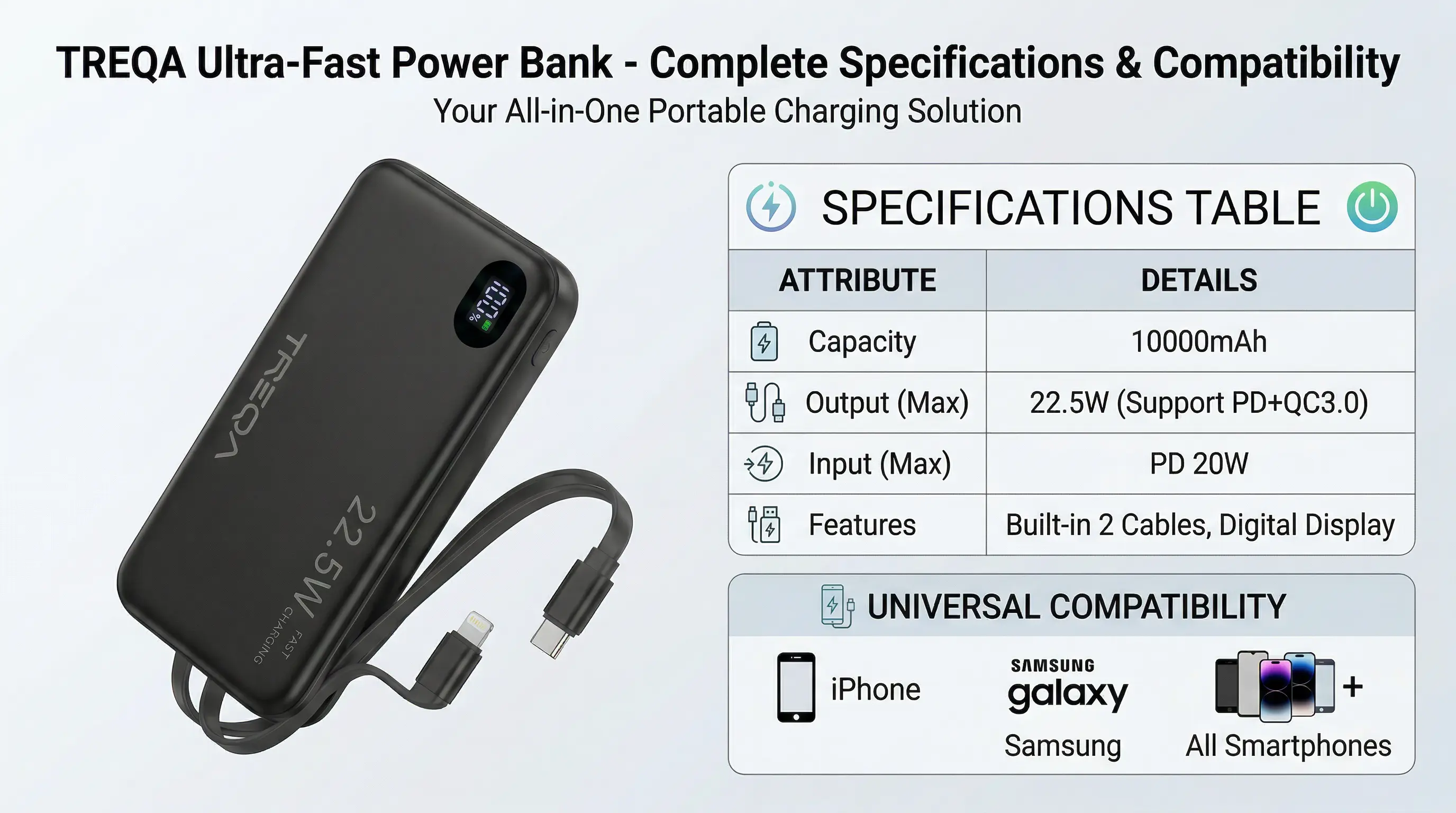 The Powerbank equiped with a clear digital display, providing real-time battery status to keep you informed and avoid the frustration of unexpected power loss.