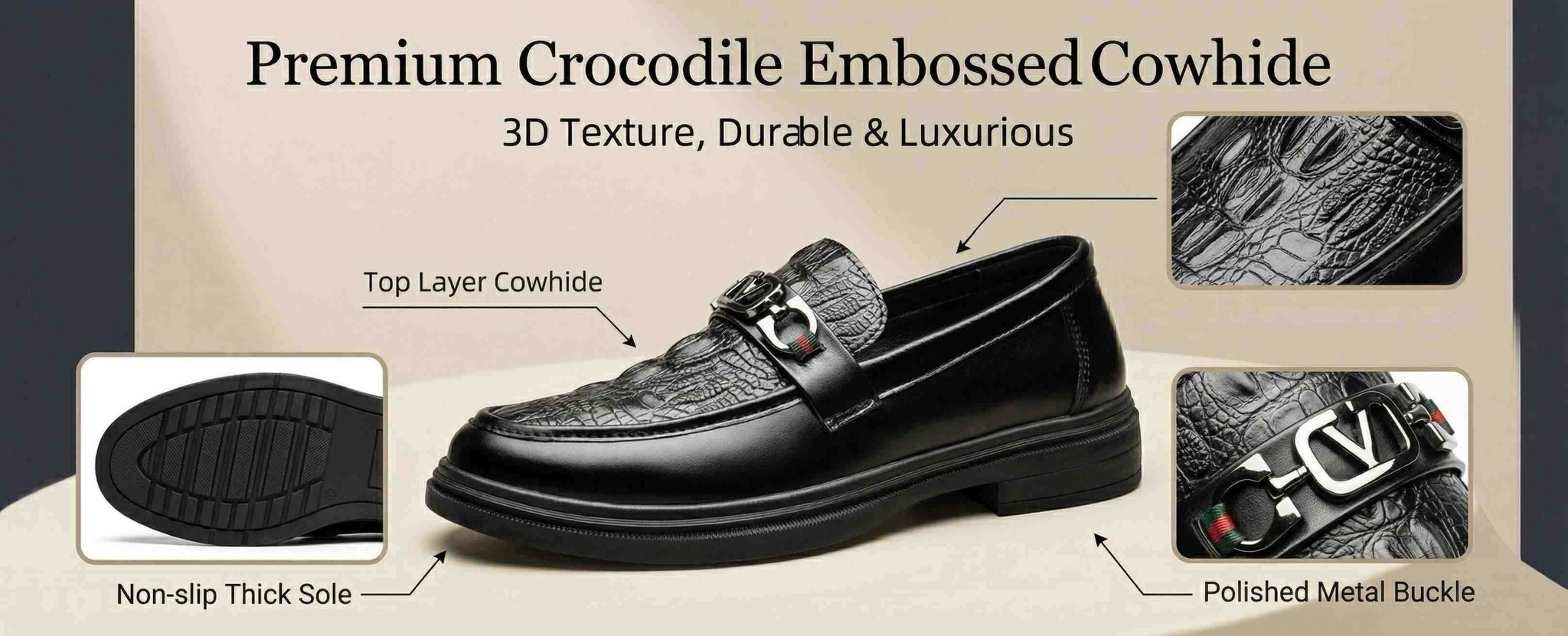 Elevate your social standing with the LVYMB Luxury Metal Buckle Loafer. This isn't just a shoe; it's a statement of effortless class and modern success. Designed for the man who values both style and convenience, this pair combines the bold character of crocodile embossing with the refined touch of Italian-inspired hardware.
