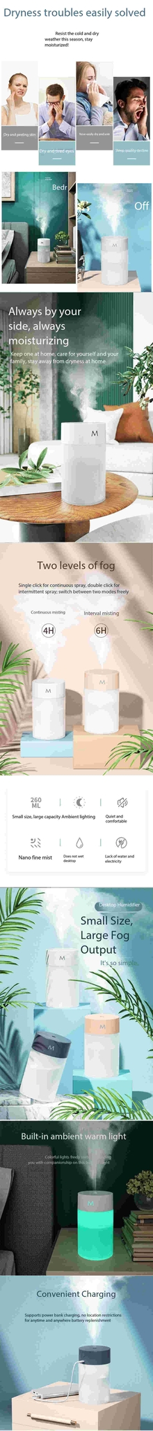 5. Press power on and start humidify(Long Press is turn off) SPECIFICATION: