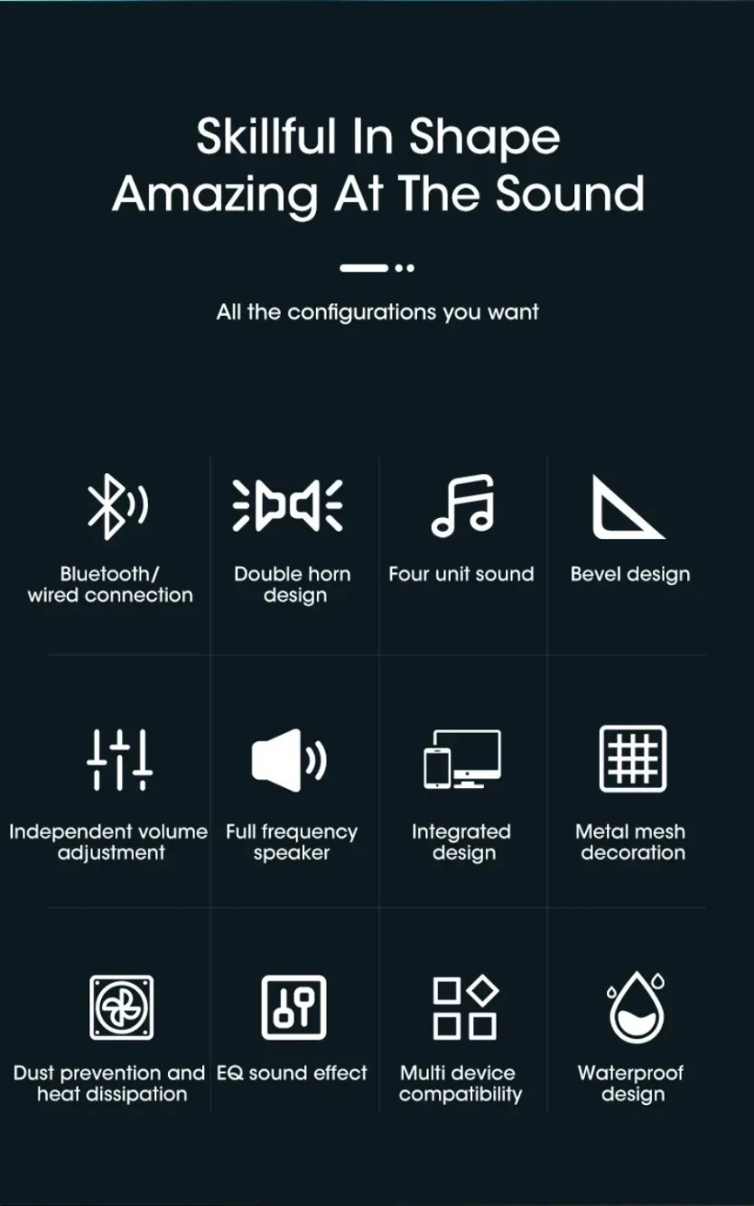 • Bluetooth Connectivity :Experience seamless audio transmission with PC Soundbar's Bluetooth connectivity, perfect for TV, PC, and laptop use.
