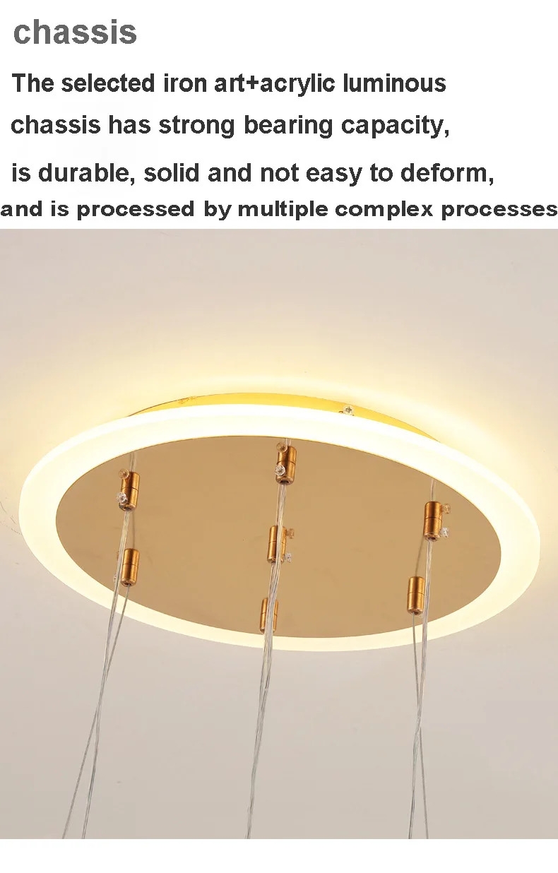 This modern LED ring pendant lamp combines simple, stylish circular lines with a spherical body for a unique visual effect. Suitable for dining rooms, living rooms, bedrooms, kitchens, and other spaces, its circular shape blends seamlessly into the ceiling, creating a modern aesthetic. With adjustable light levels of white, neutral, and warm white, it caters to every mood, adding warmth and style to any home, brightening every aspect of your life.
