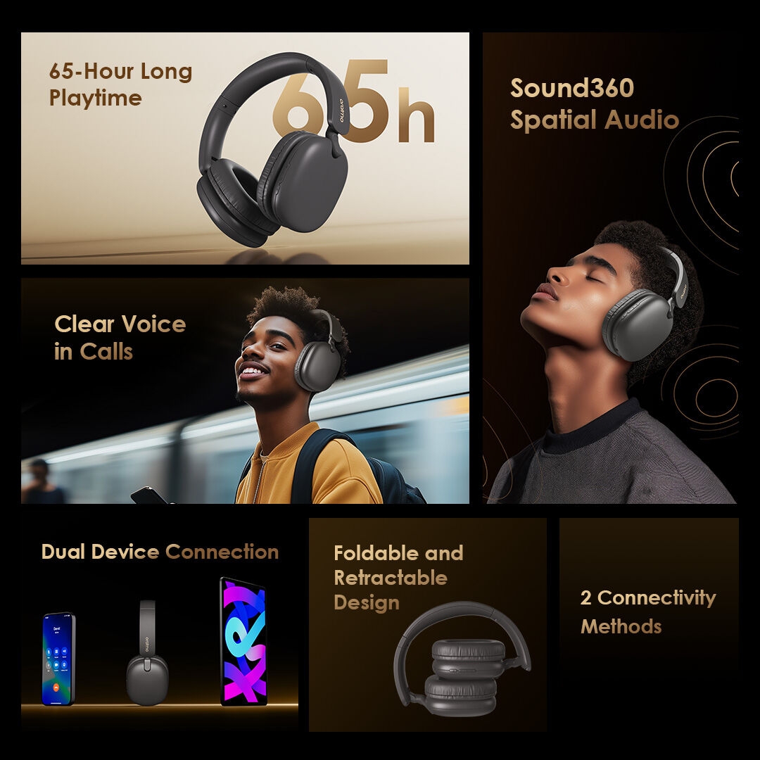 With up to 65 hours of battery life in Bluetooth mode, these headphones keep the music playing day and night for your longest journeys.