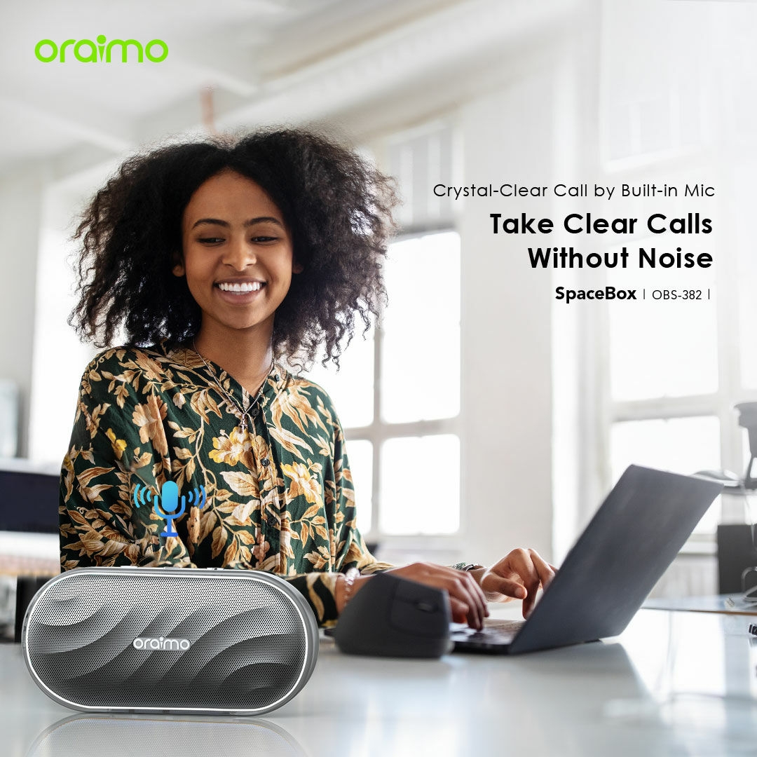 The oraimo SpaceBox delivers powerful oraimo Pro Sound with impactful bass in a compact design, featuring professional acoustic engineering and exclusive HavyBass™ technology.