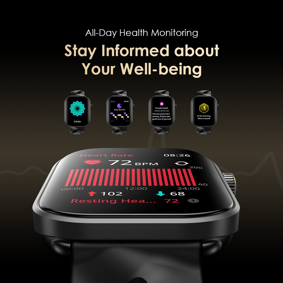 Track your blood oxygen, heart rate, respiration, and sleep quality with oraimo Watch Pro AM. Stay informed and proactive about your well-being.
