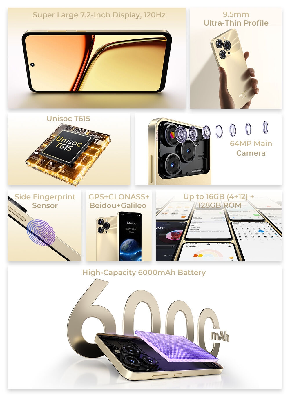 C69 Smartphone - 6000mAh,7.2" HD+,16GB RAM+128GB/1TB,64MP+8MP, Phone Android 15 |