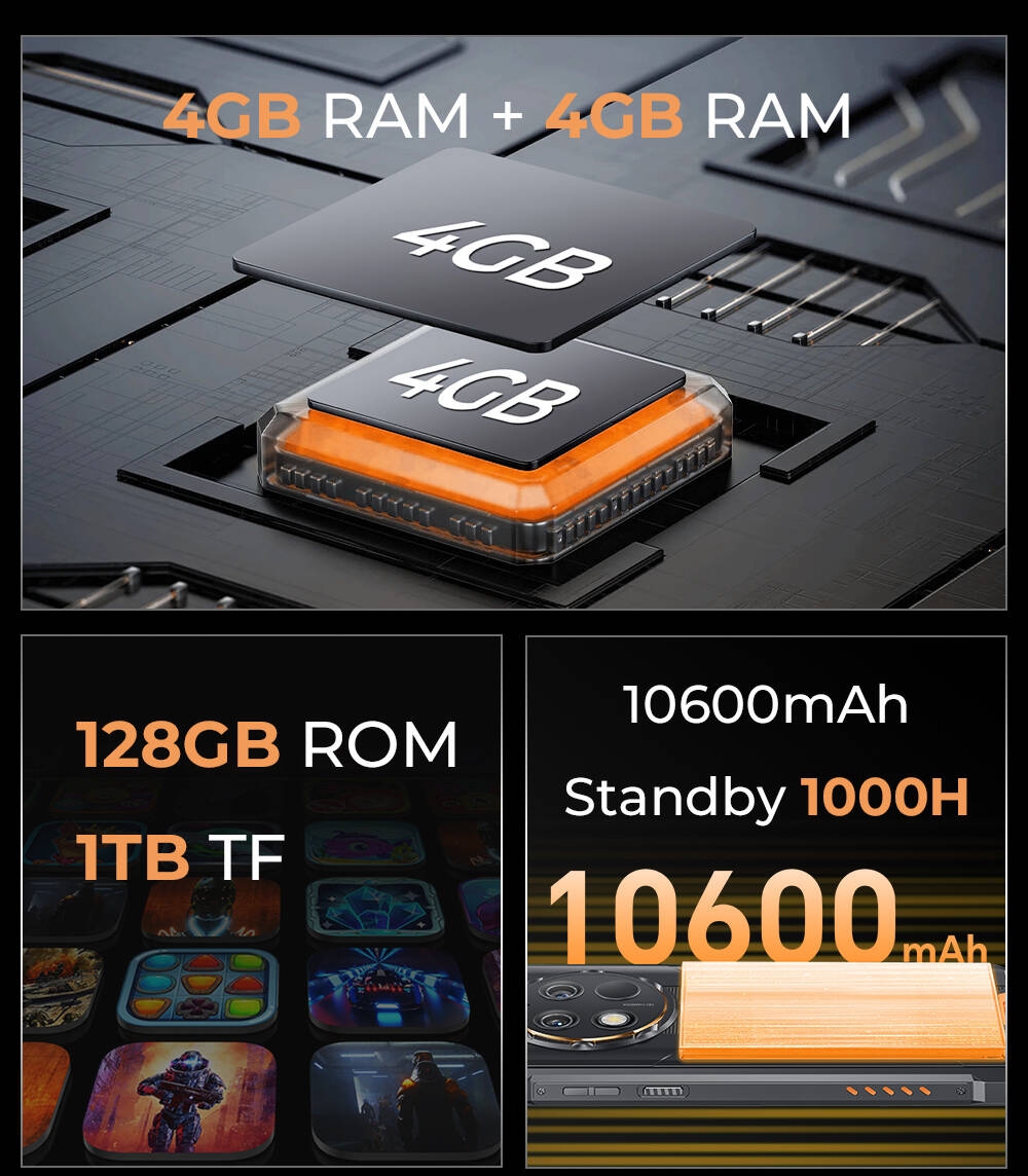 Oukitel G1S Rugged Smartphone - 10600mAh,8GB+128GB/1TB,Unisoc Tiger T615,Android 15 Phones Outdoor Rugged phone |