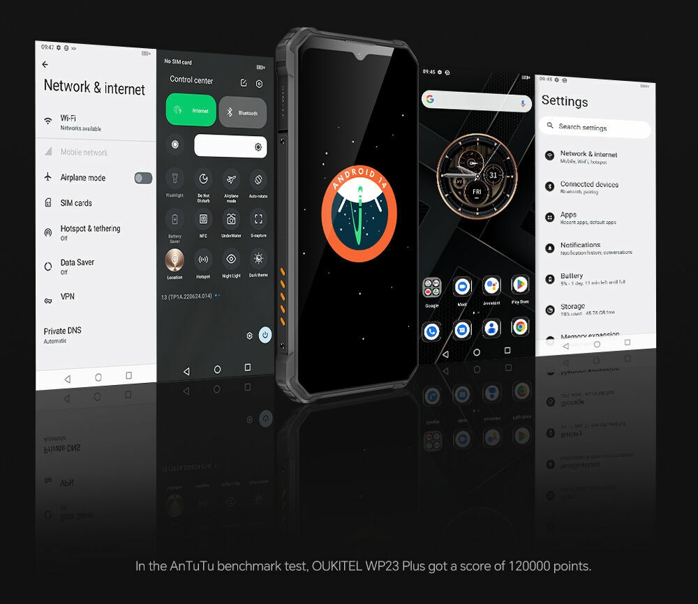【3 cameras,6.52 inch large screen 】The WP23 Plus Android 14 construction site mobile phone with a 13MP + 5MP + 2MP three cameras offers you the freedom to capture the moment and beauty of the world.