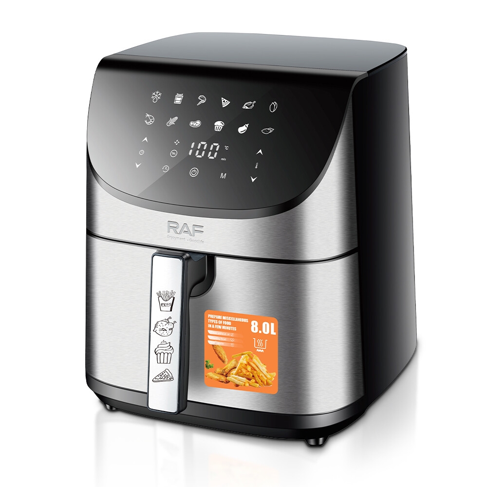 RAF New 8L Extra Large Capacity Multifunctional Electric Airfryer with Smart Digital Control Touch Display Model – 2000W and Nonstick Basket - Black/ Silver
