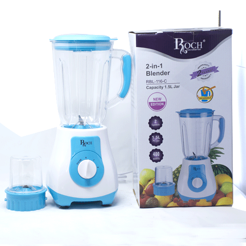 The compact body of this device gives you more free space. This Roch Blender has a simple, attractive design and a white and blue body color that makes your kitchen look great.