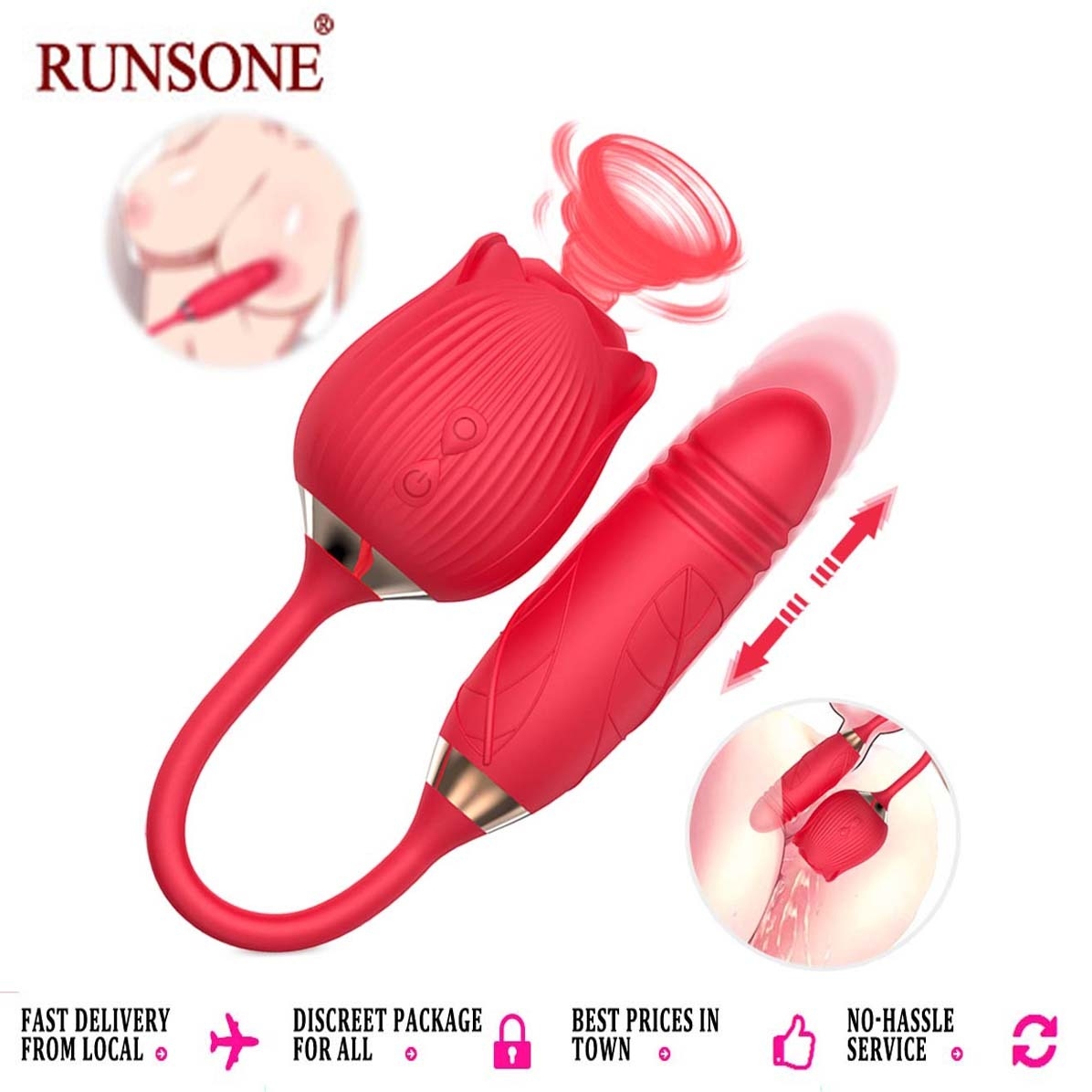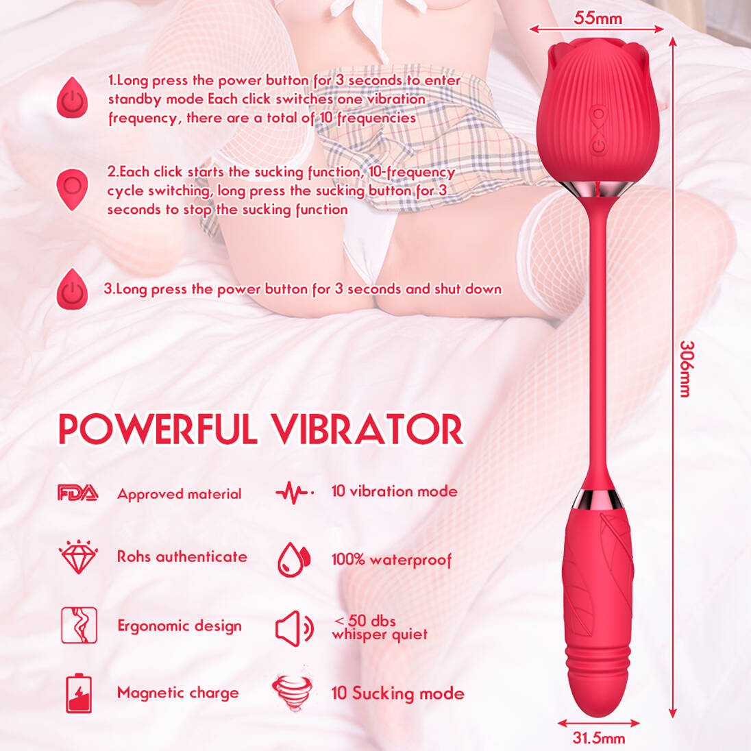 ❤ The rose clitoris vibrator is more than sucking sex toy, providing multifunction including sucking, thrusting & vibrating. The rose sucker and g spot dildo with 10 frequencies of vibration and sucking modes for double stimulations at the same time and achieve quick orgasm and extreme pleasure you have never had