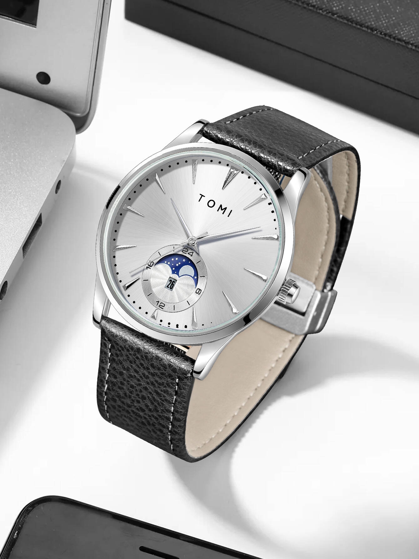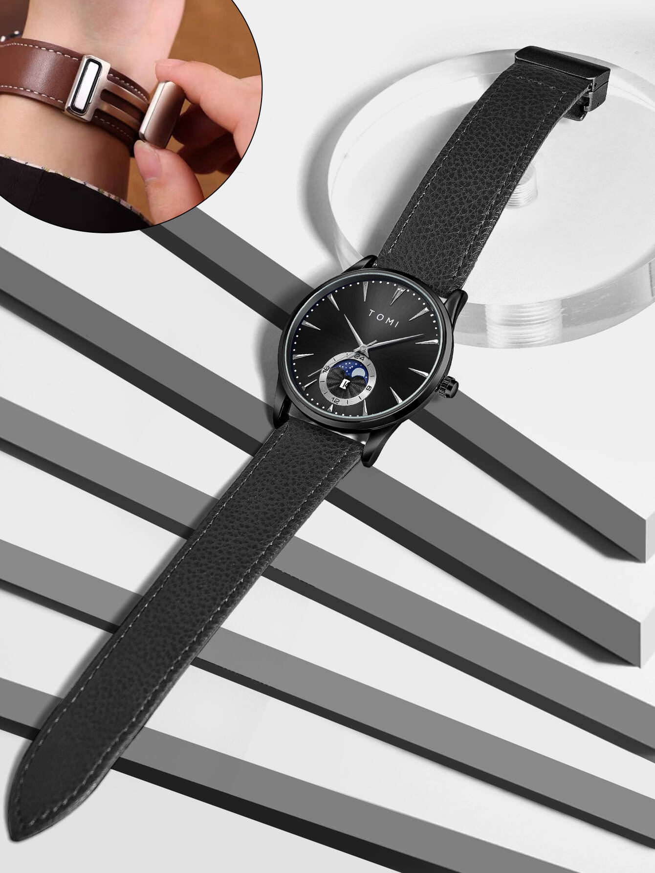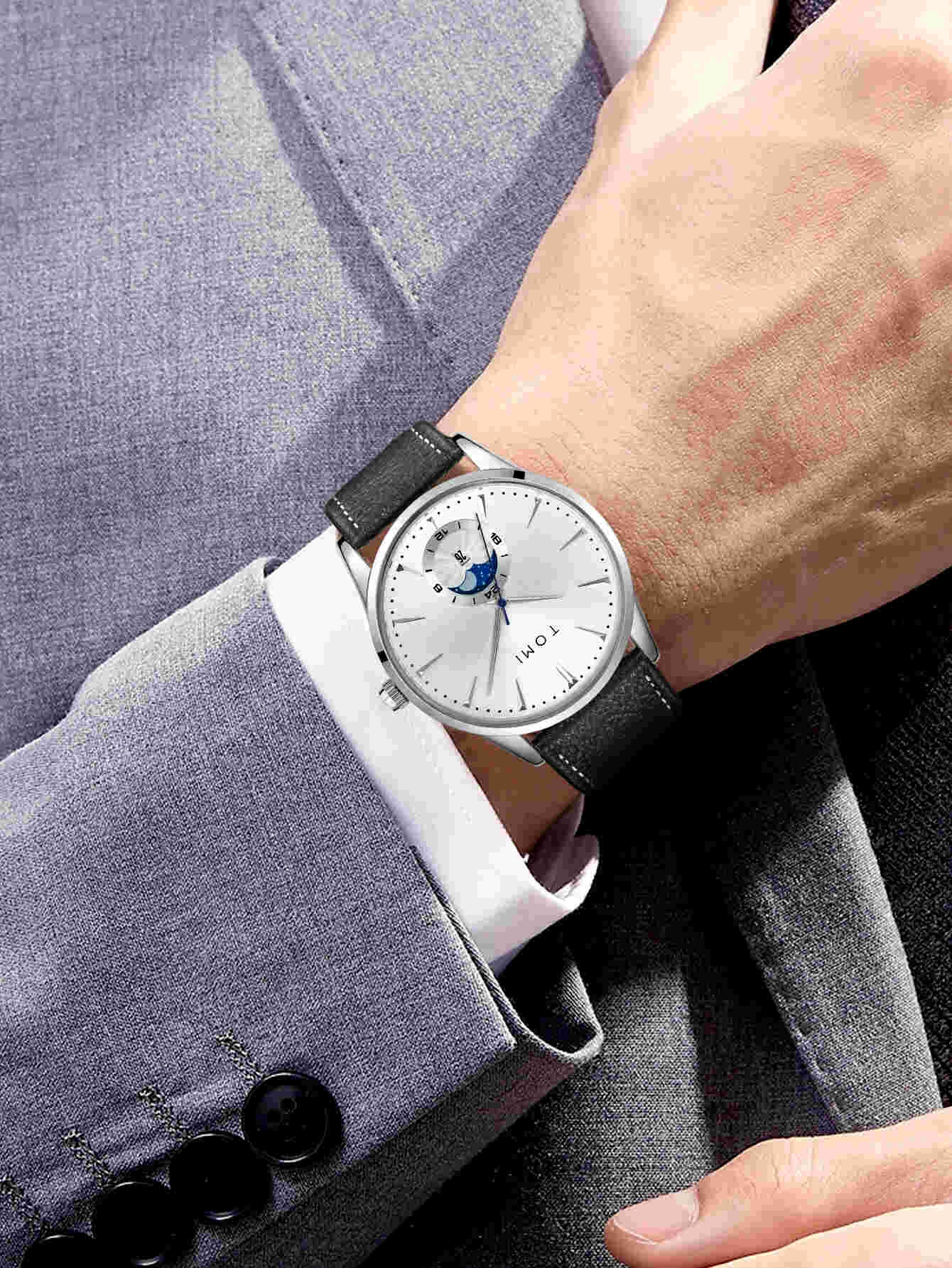 Tomi Men Luxury Leather Strap Watch Business and Leisure Large Dial Calendar Men Quartz Watch Relogio Masculino-Dark BlueGH₵ 189.00GH₵ 569.0967%Add to cart