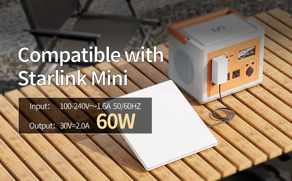 This Starlink Mini power supply provides a stable and consistent 60W output at 30V/2A, ensuring optimal performance for your Starlink Mini device. This reliable power delivery ensures consistent operation and functionality of your Starlink Mini.