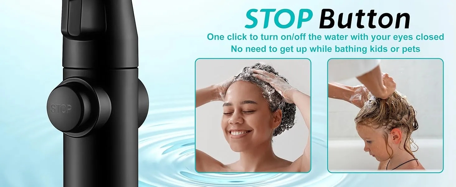 【5 High Pressure Water Spray Modes】Our handheld showerhead features 5 spray settings (Spray mode, Soft mode, Shower mode, Rain mode, Pulse mode). Only one button is needed to control the water flow, and you can enjoy a powerful rain or gentle rain shower. Ideal for children's showers, senior showers, pet showers, bathing, and cleaning applications.